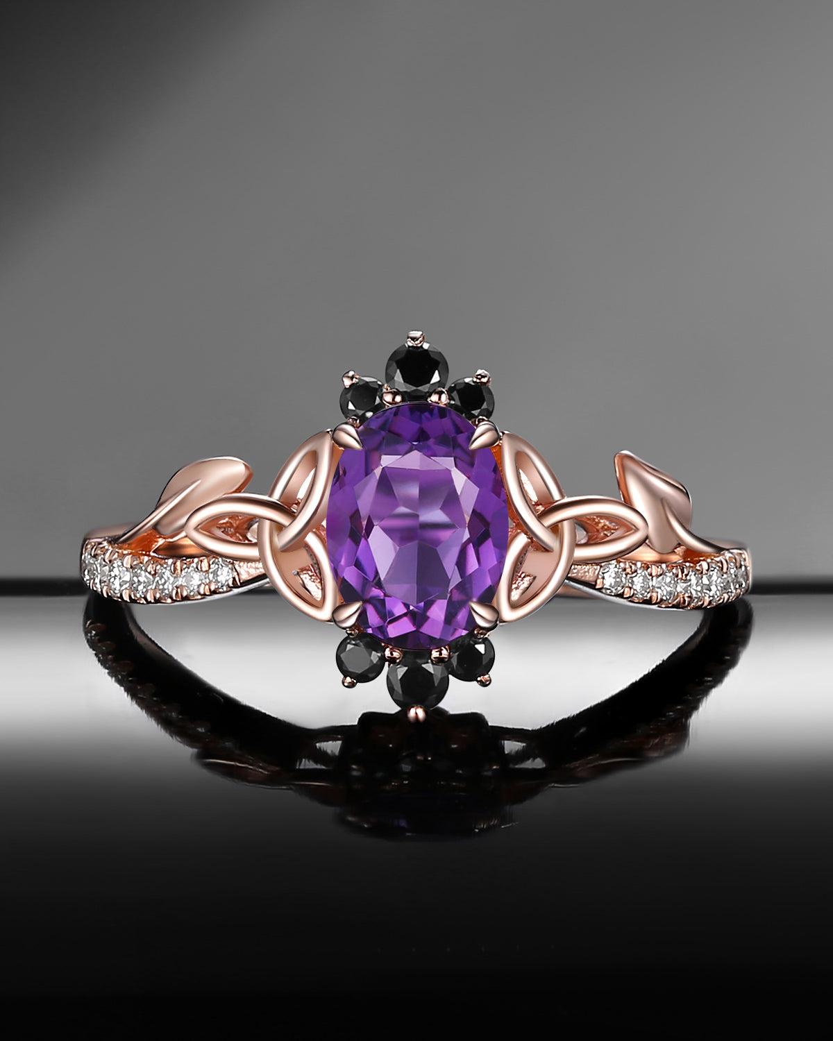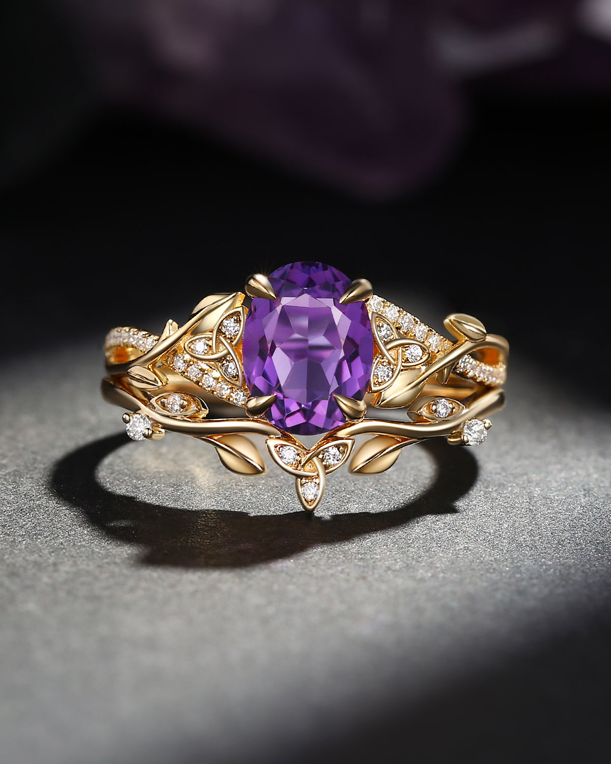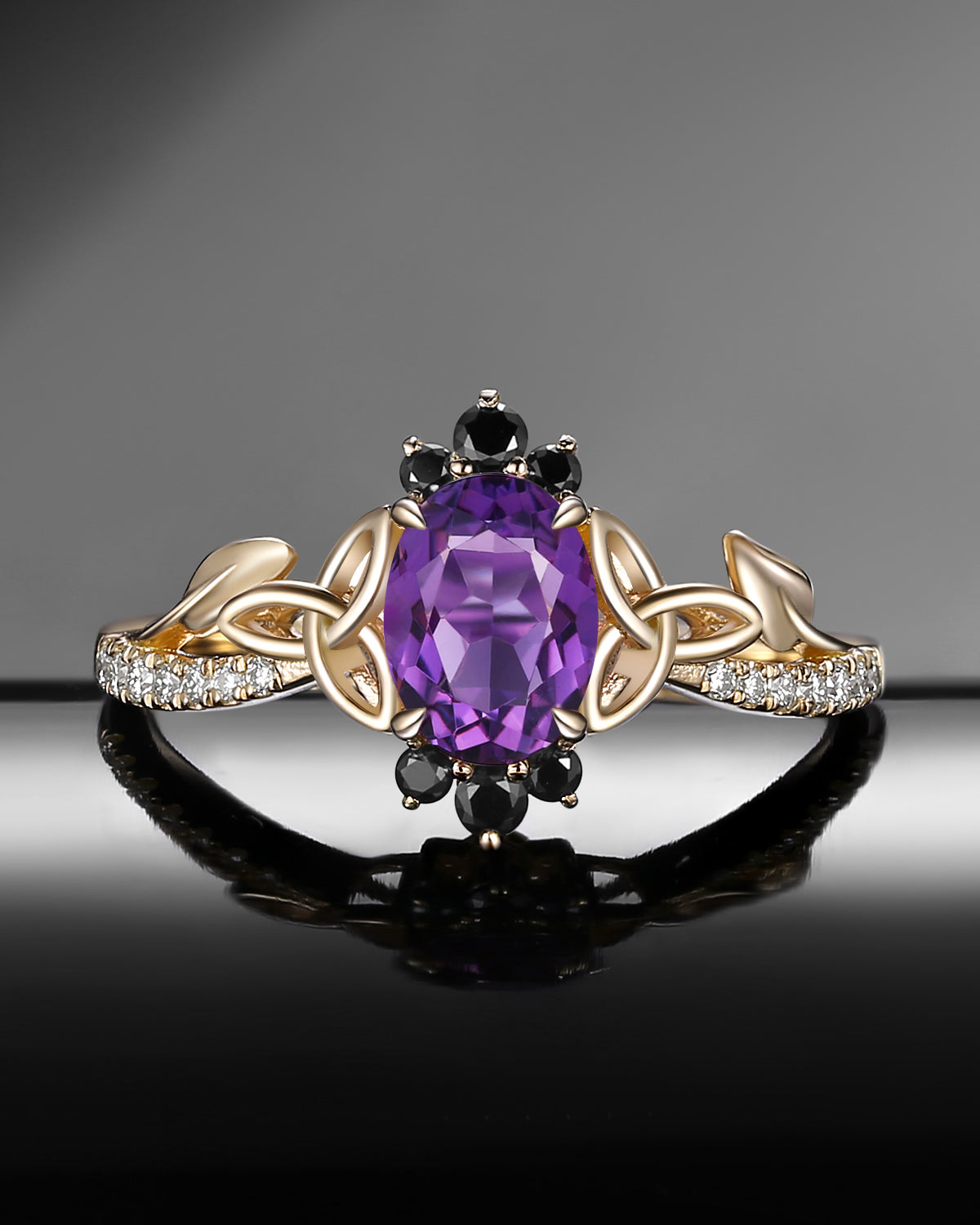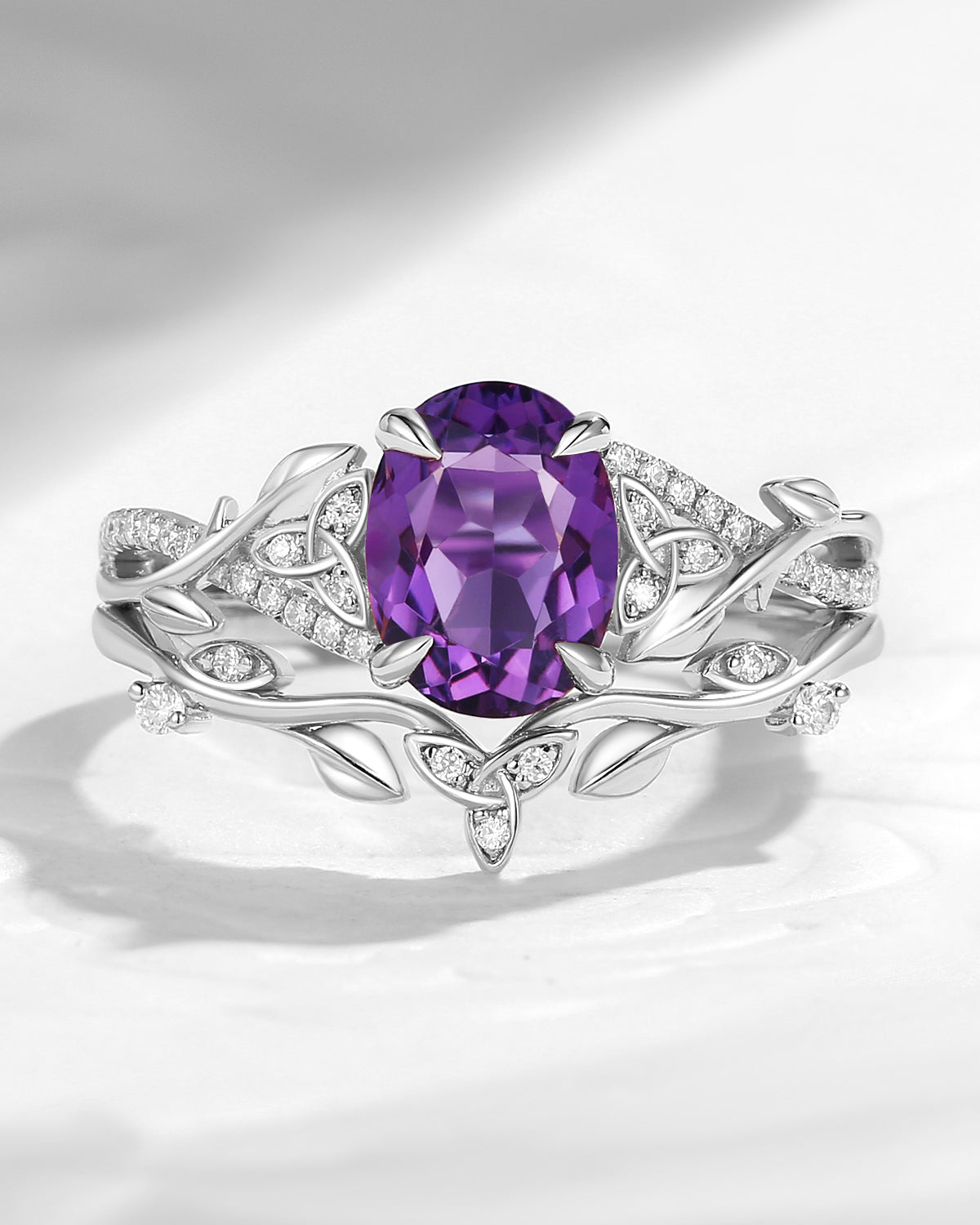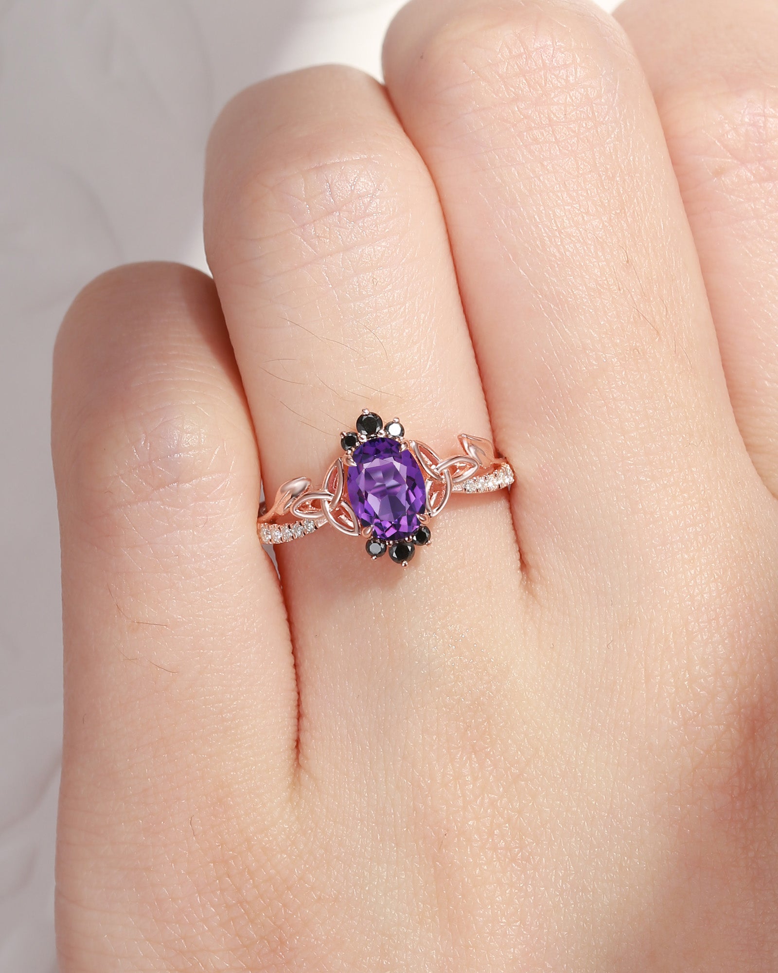 Vintage Filigree Oval Cut Lab Alexandrite Celtic Engagement Ring