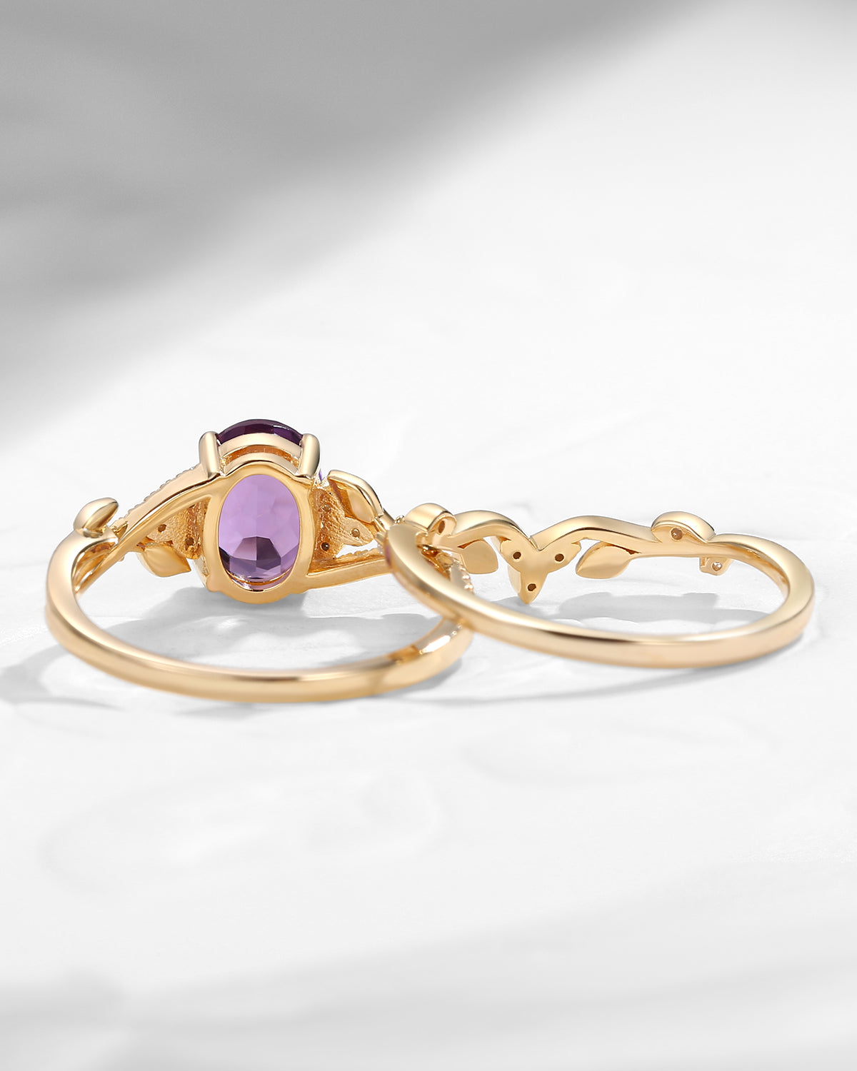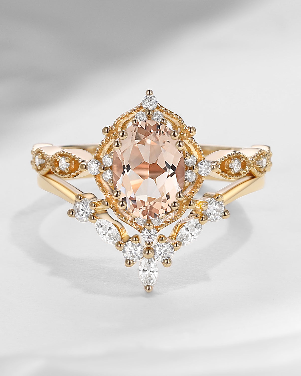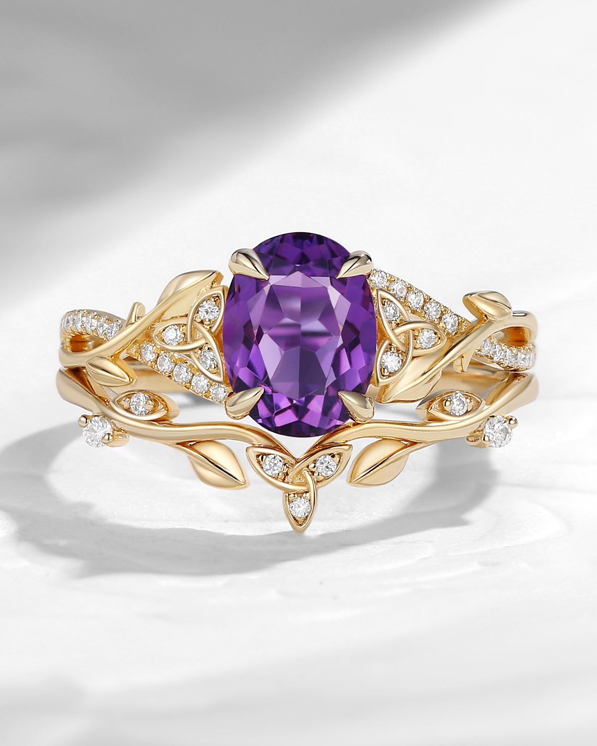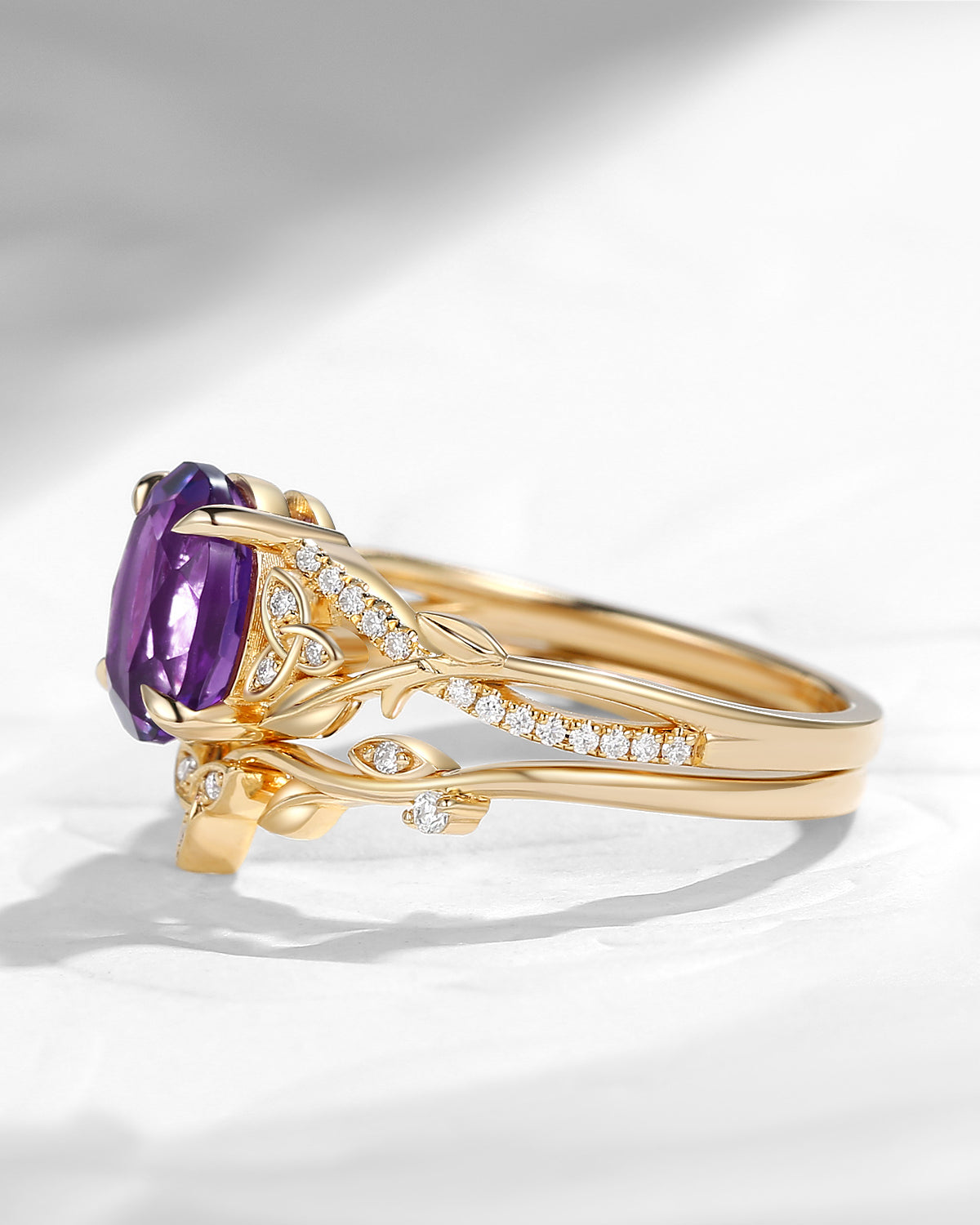 Celtic Moon | Oval Cut Citrine Infinity Celtic Moon Engagement Ring Set 2pcs