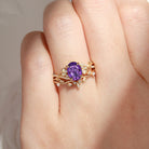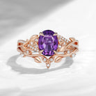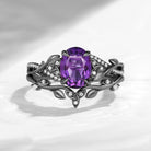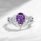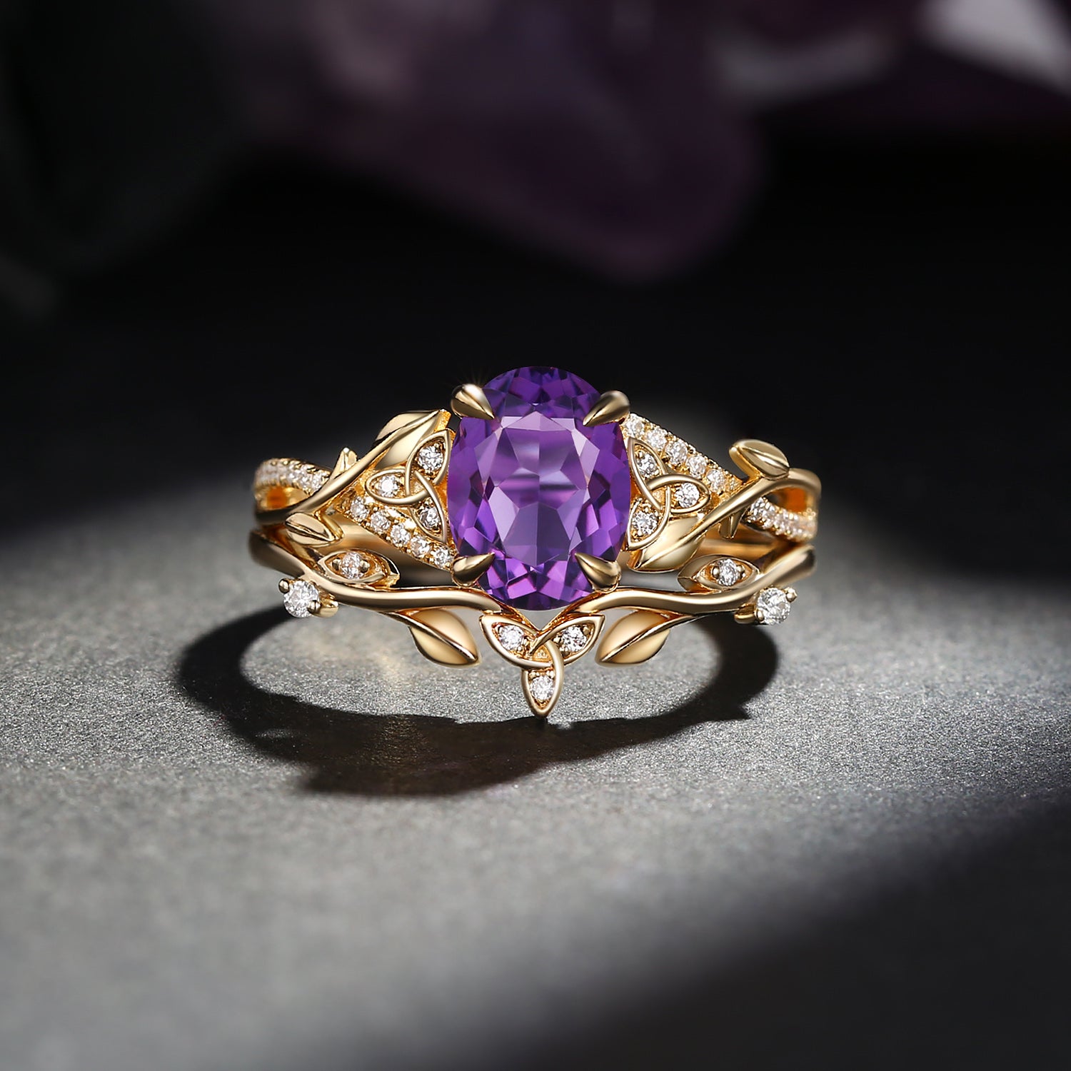 Celtic Calendar | 1.21-2.17 | Oval Amethyst Nature Inspired Rowan Leafy Infinity Celtic Ring Set 2pcs Birthstone Ring Promise Ring Celtic Inspired Rings