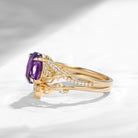 Celtic Calendar | 1.21-2.17 | Oval Amethyst Nature Inspired Rowan Leafy Infinity Celtic Ring Set 2pcs