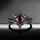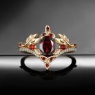 Celtic Calendar | 12.24-1.20 | Oval Garnet Nature Inspired Birch Leafy Celtic Ring