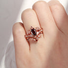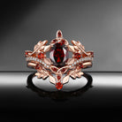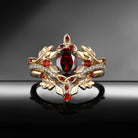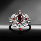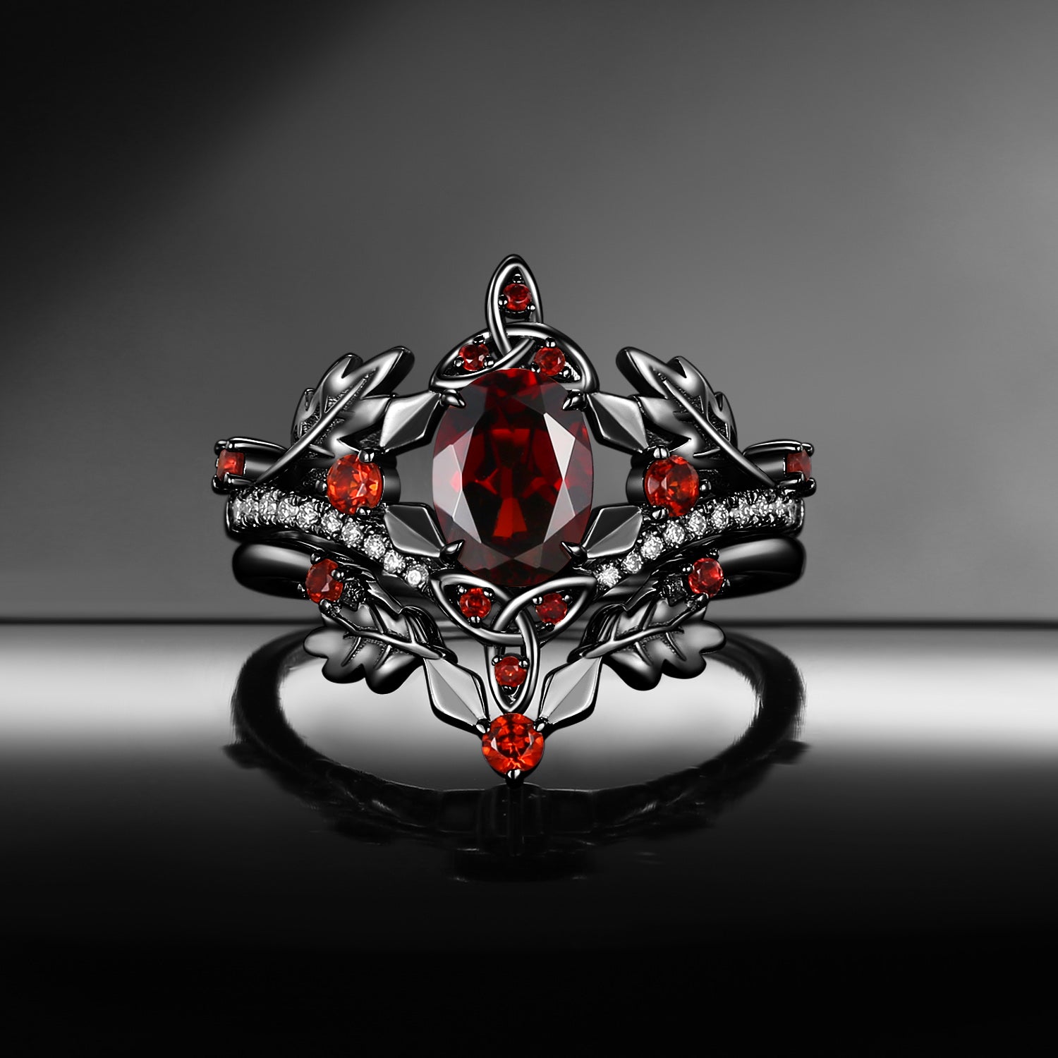 Celtic Calendar| 12.24-1.20 | Oval Garnet Nature Inspired Birch Leafy Celtic Ring Set 2pcs Birthstone Ring Promise Ring Celtic Inspired Rings January Birthstone Ring
