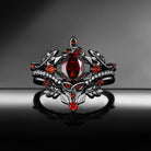 Celtic Calendar | 12.24-1.20 | Oval Garnet Nature Inspired Birch Leafy Celtic Ring Set 2pcs
