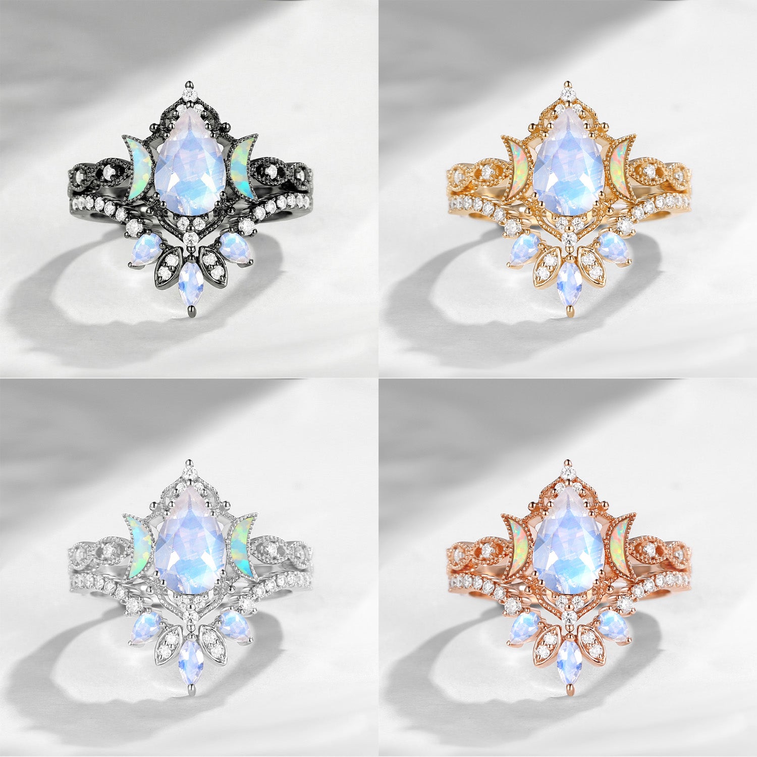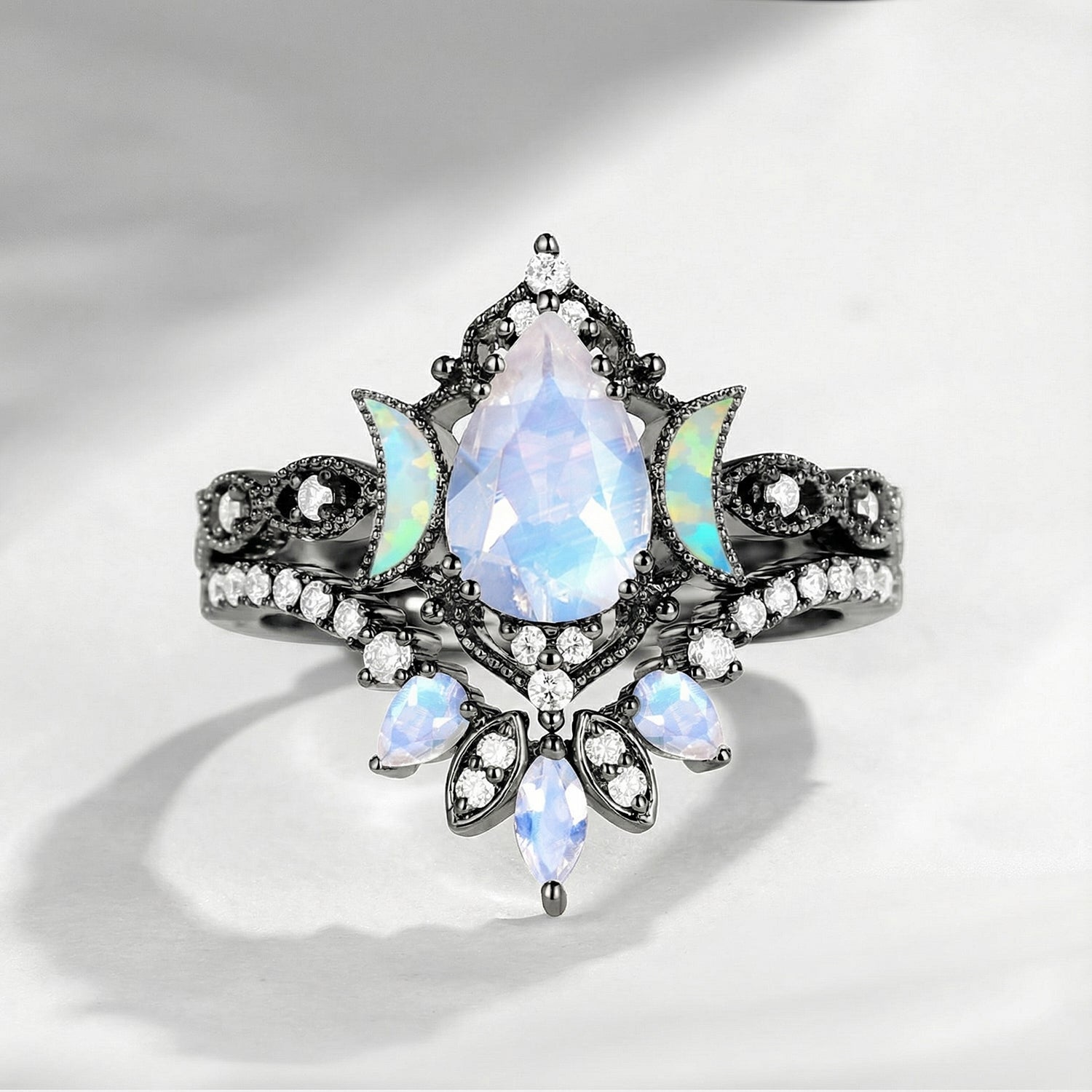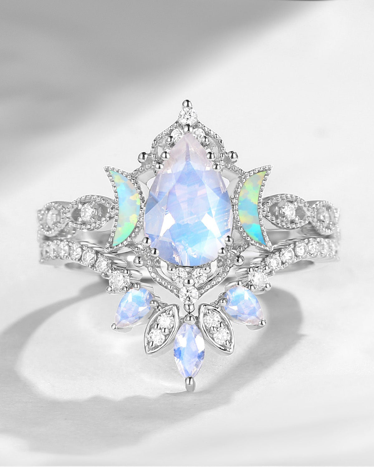 Crescent Moon | Pear Cut Moonstone 'Ultra Galaxy' Engagement Ring Set 2pcs