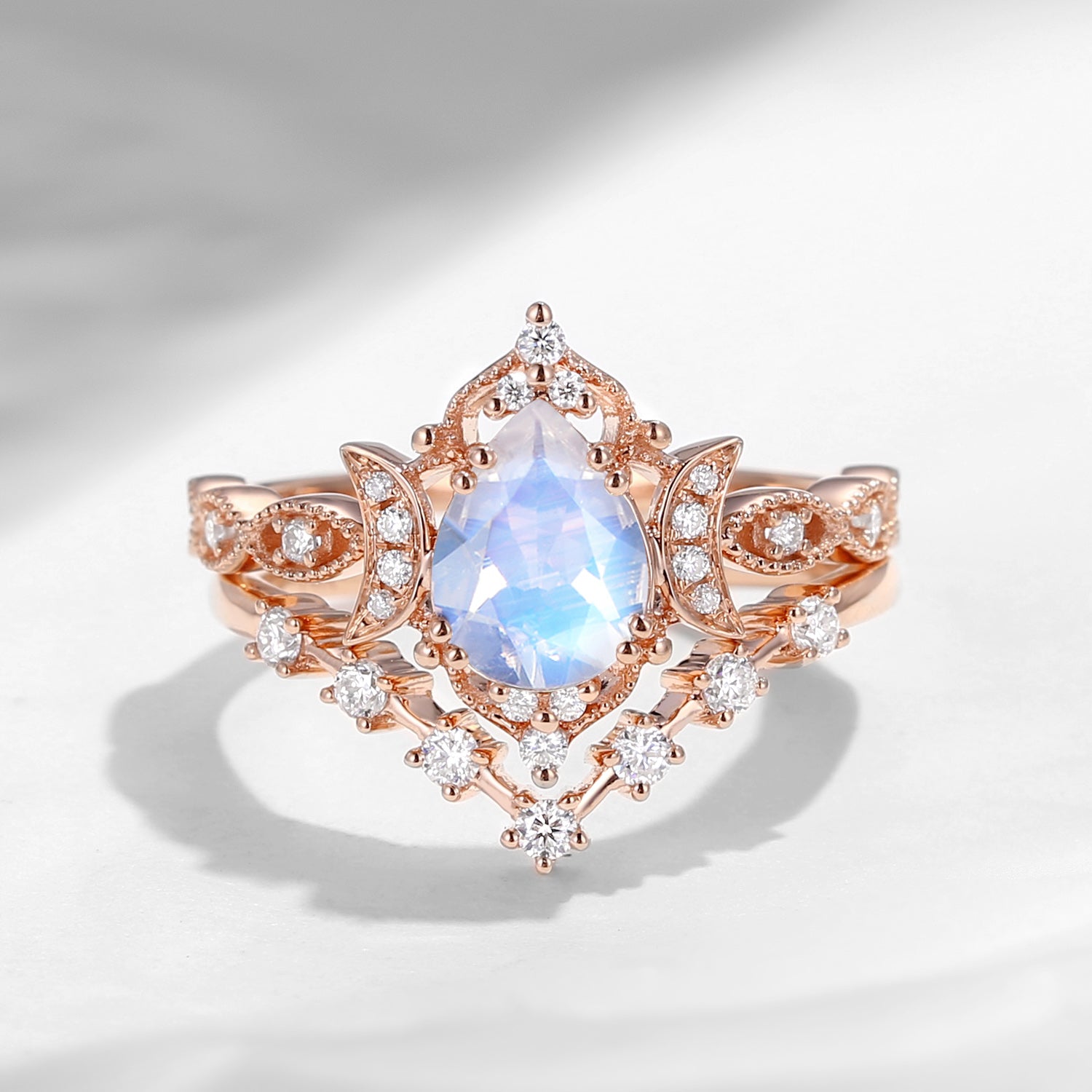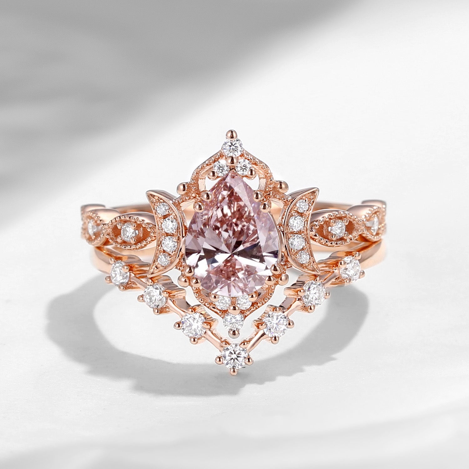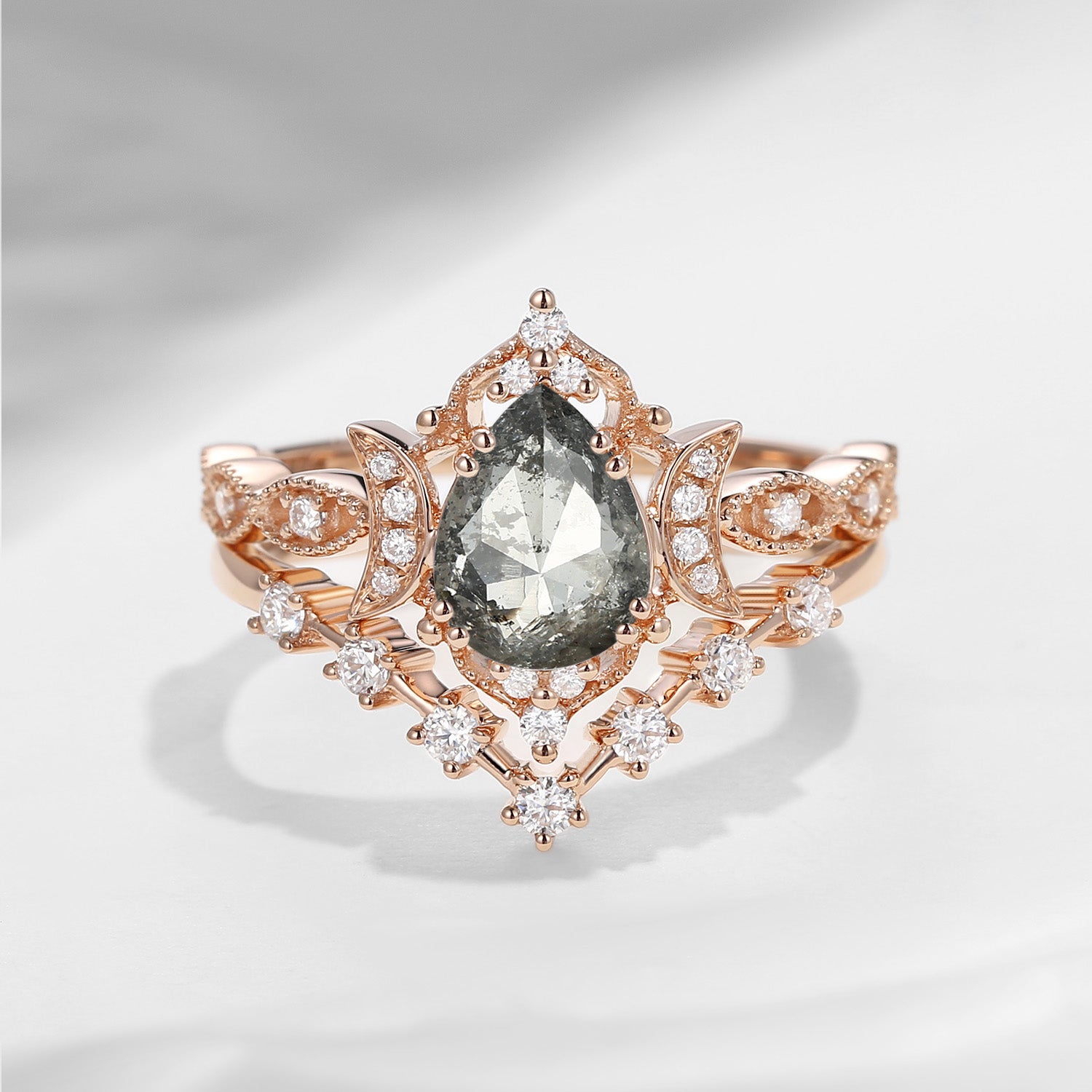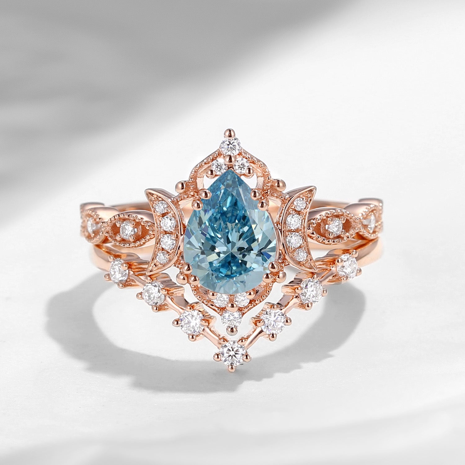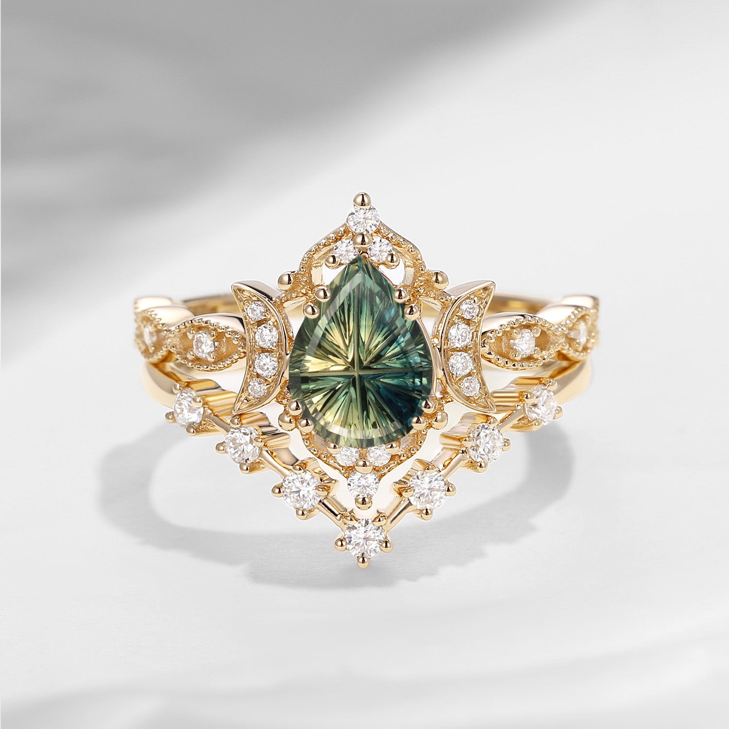 Crescent Moon | Pear Cut Mystic Topaz Galaxy Black Gold Engagement Ring Set 2PCS