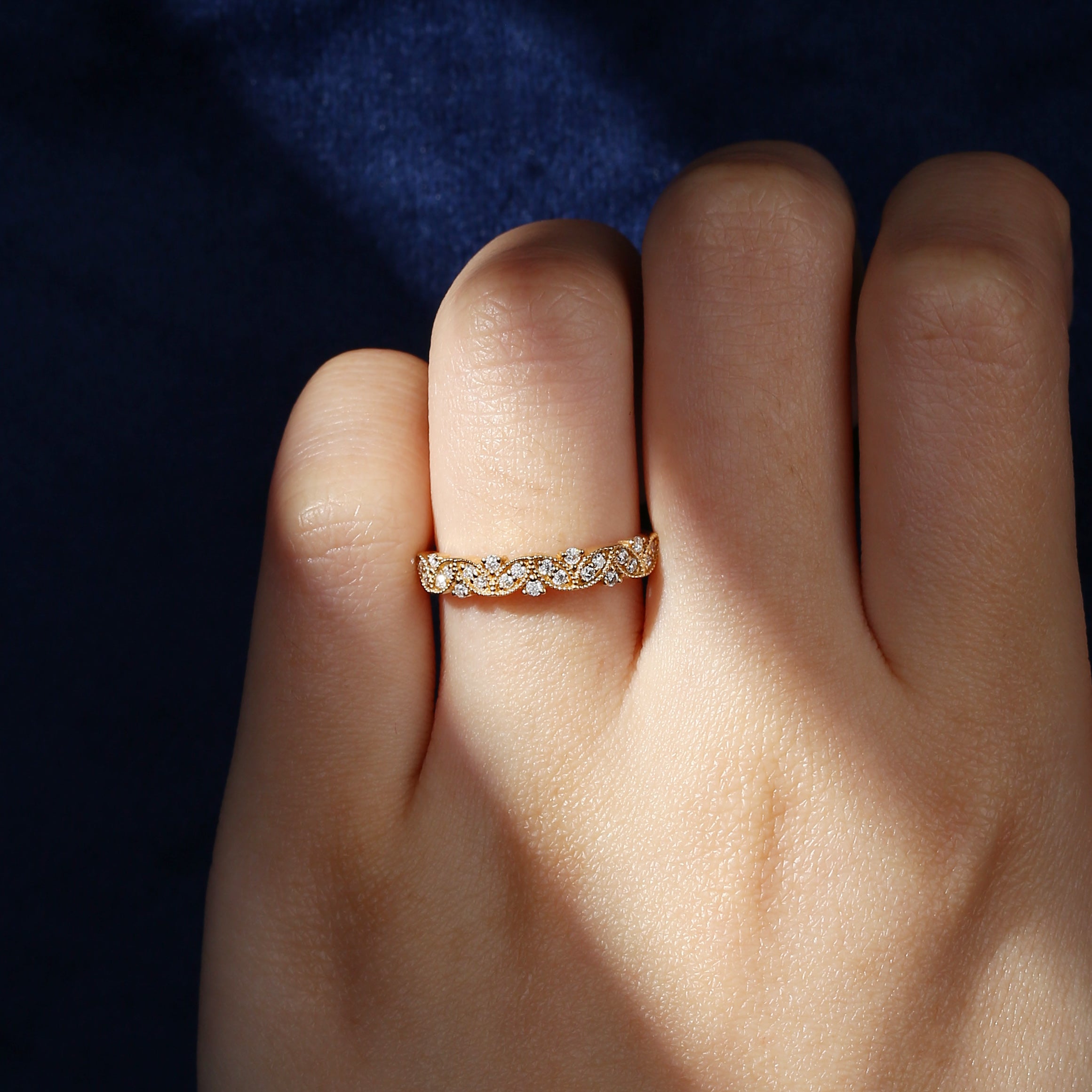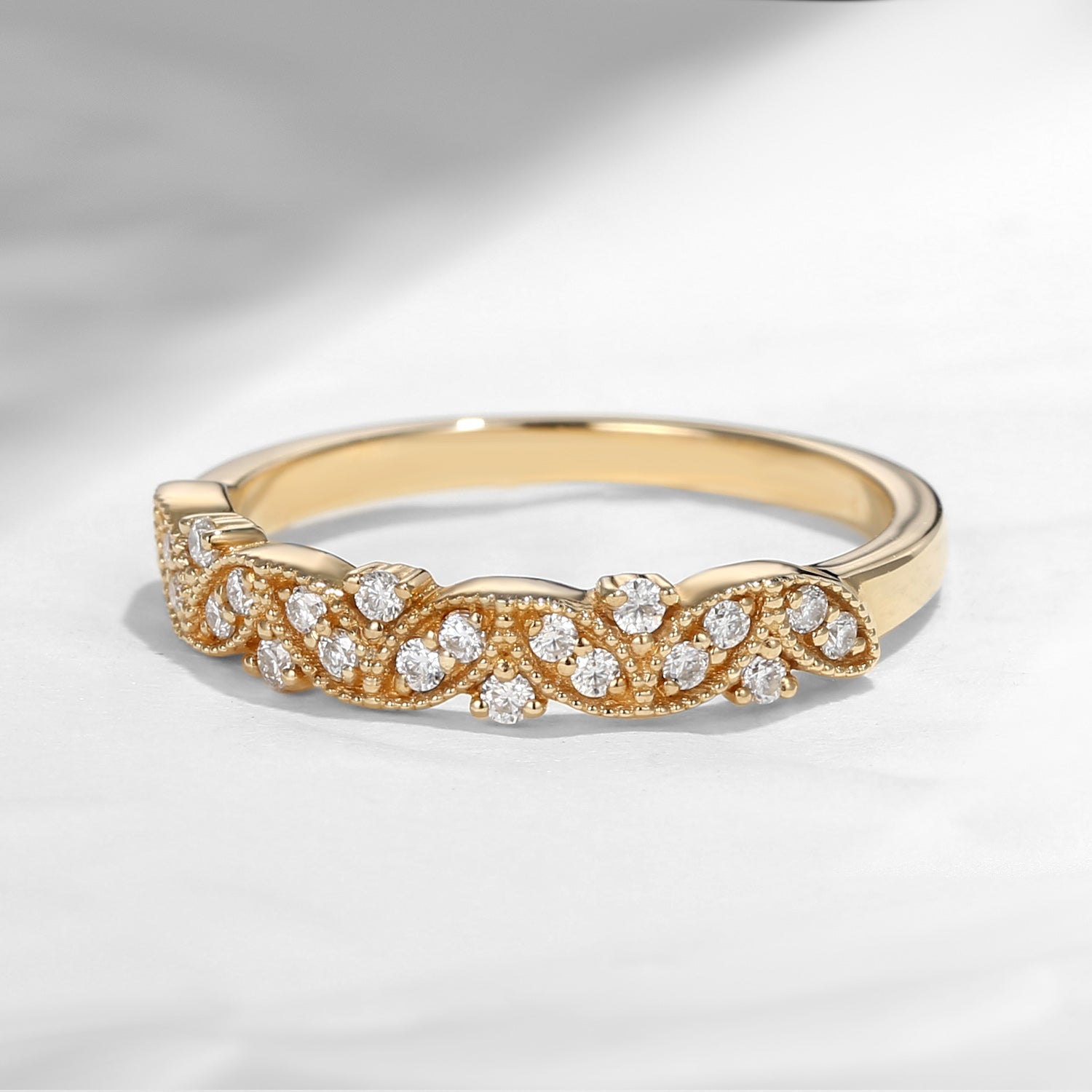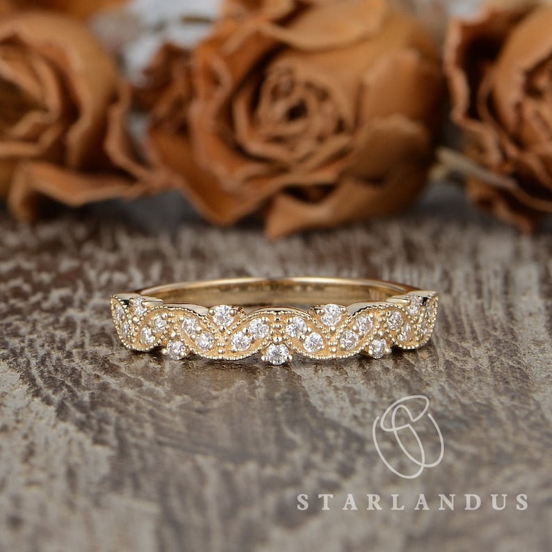 Antique Stacking Band Moissanite Wedding Band Women Art Deco Diamond Ring Leafy Vine Ring Cluster Ring Matching Band Star Floral Marquise