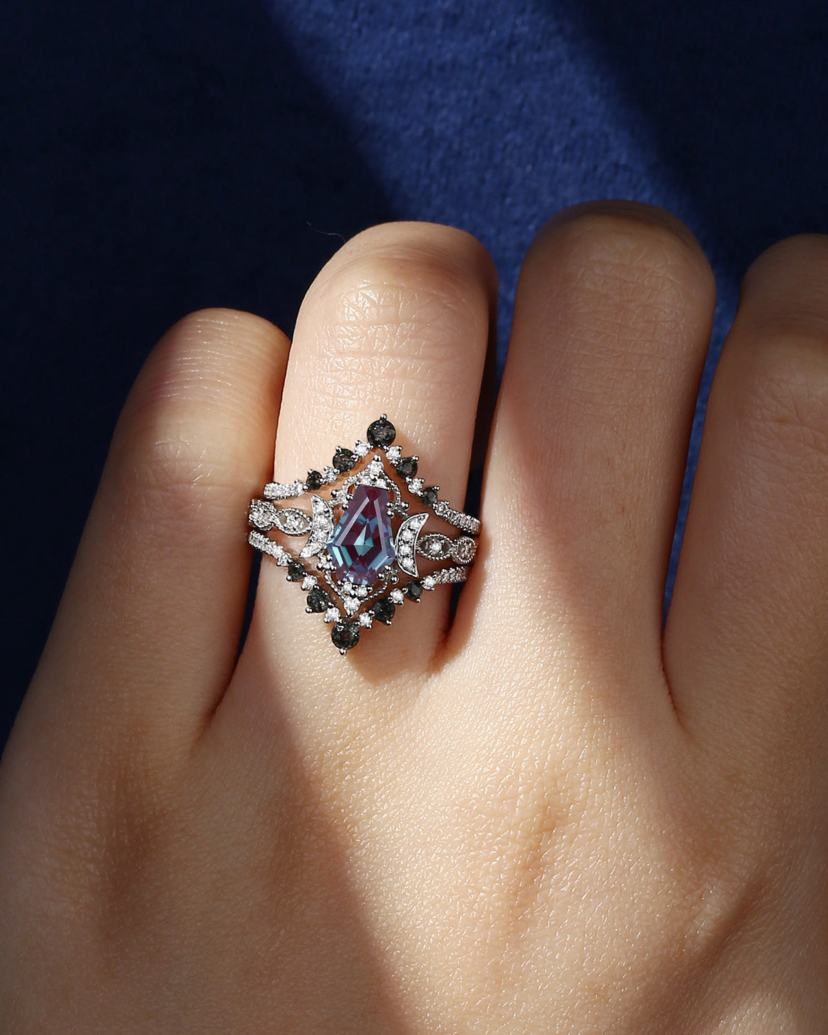 In Stock | Bette‘s Eyes | Unique Round Cut Moonstone Ring Set 3pcs