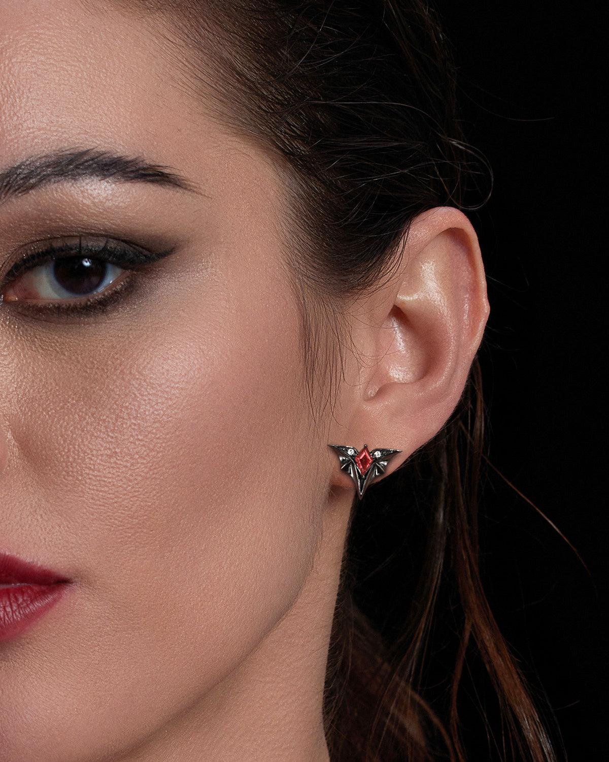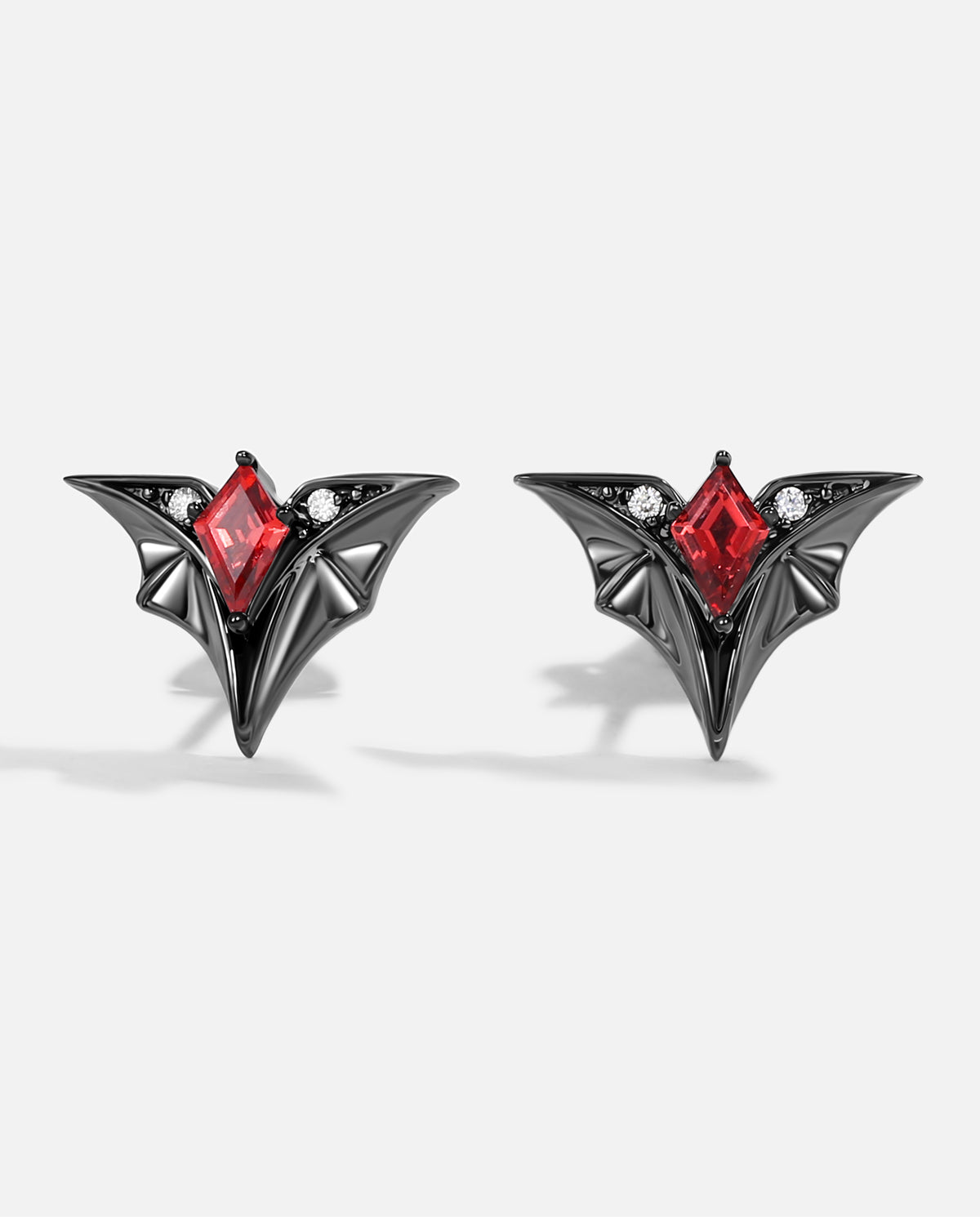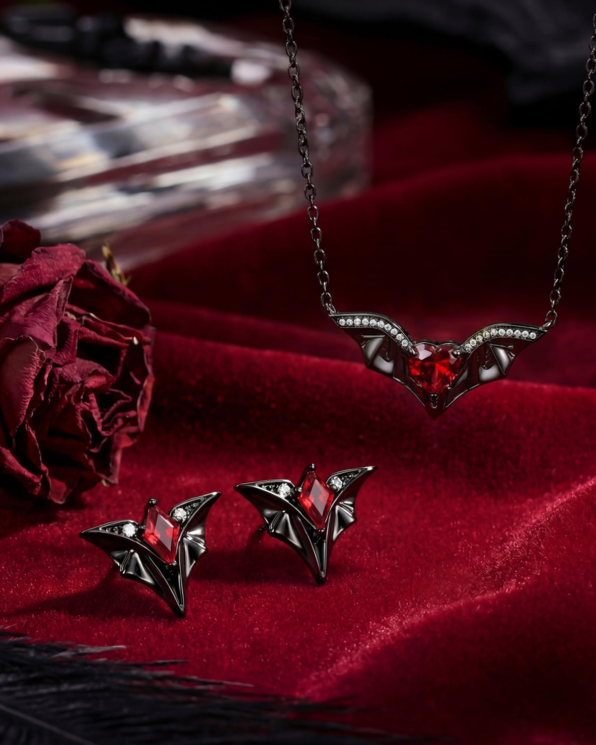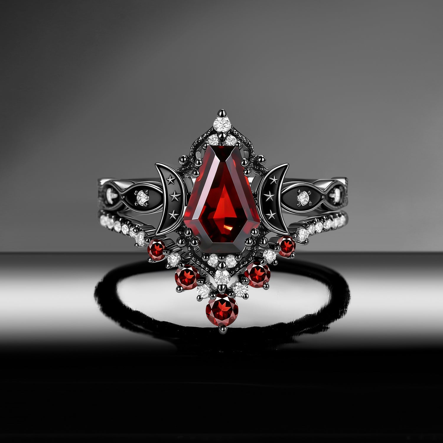 Gothic Bat Inspired Kite Cut Garnet Vintage Engagement Ring Set 2pcs
