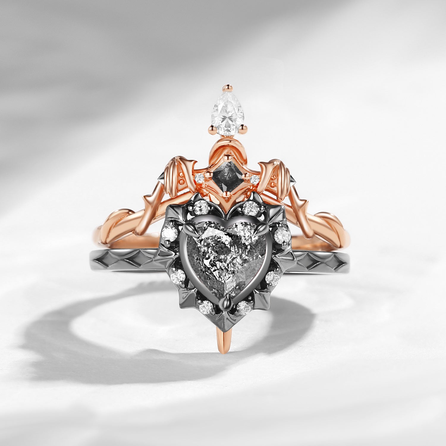 Dainty Heart Shaped Black Rutilated Quartz Classic Promise Ring