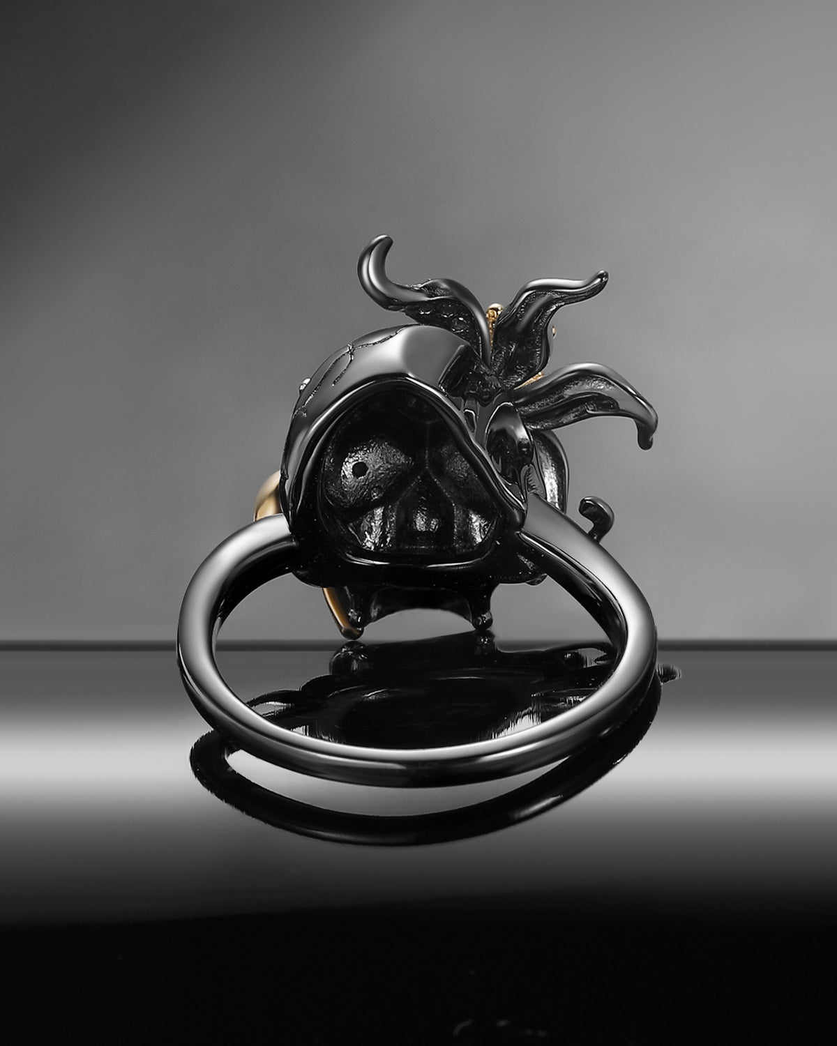 The ring is gorgeous! It also came in a beautiful coffin box. Of course, she said YES! 🖤 My custom ring is also a perfect fit!
