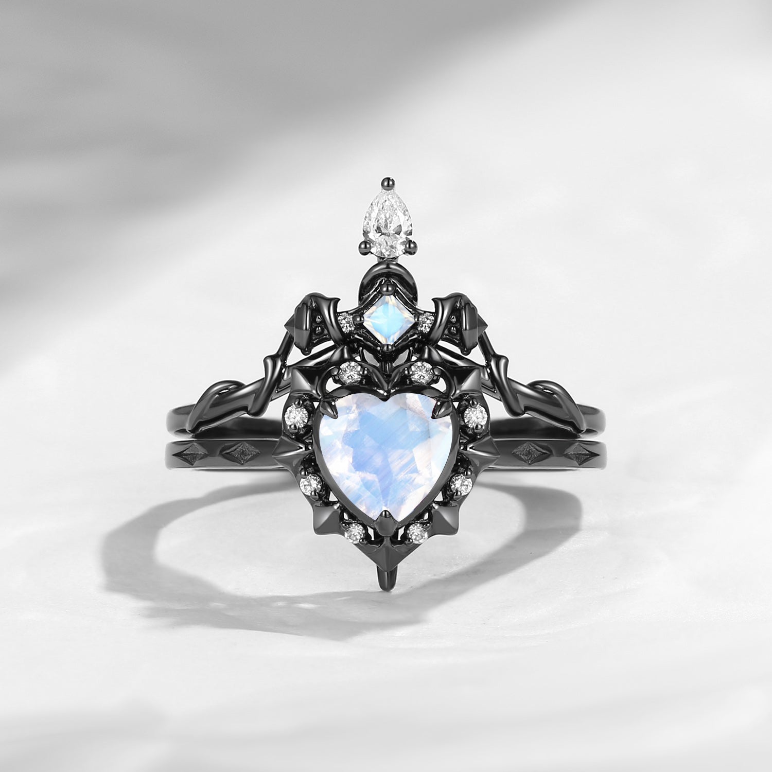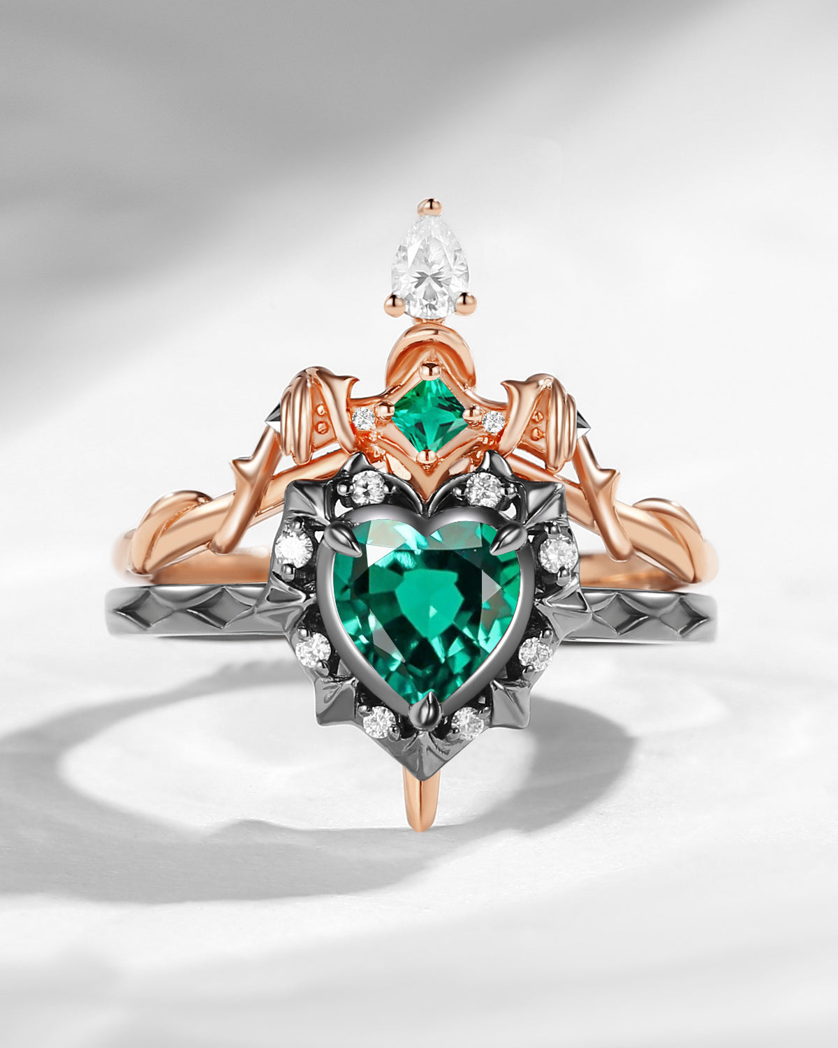 Unique Heart Shaped Garnet Sword Ring Bridal Set 2pcs Cupid's Arrow Valentine's Day Gift