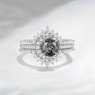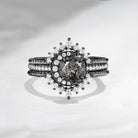Unique Black Rutilated Quartz Women Bridal Set 3pcs Vintage Cluster Anniversary