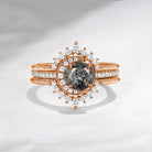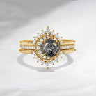 Crescent Moon | Round Black Rutilated Quartz Engagement Ring Set 3PCS - Full Moon