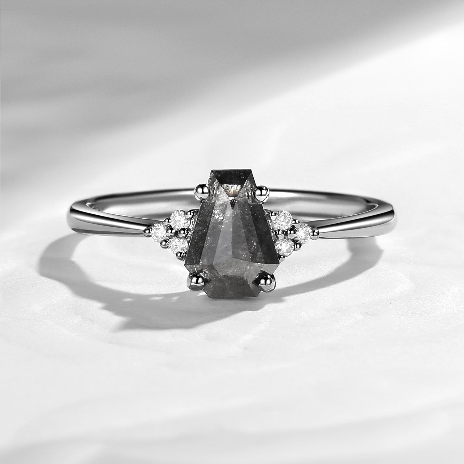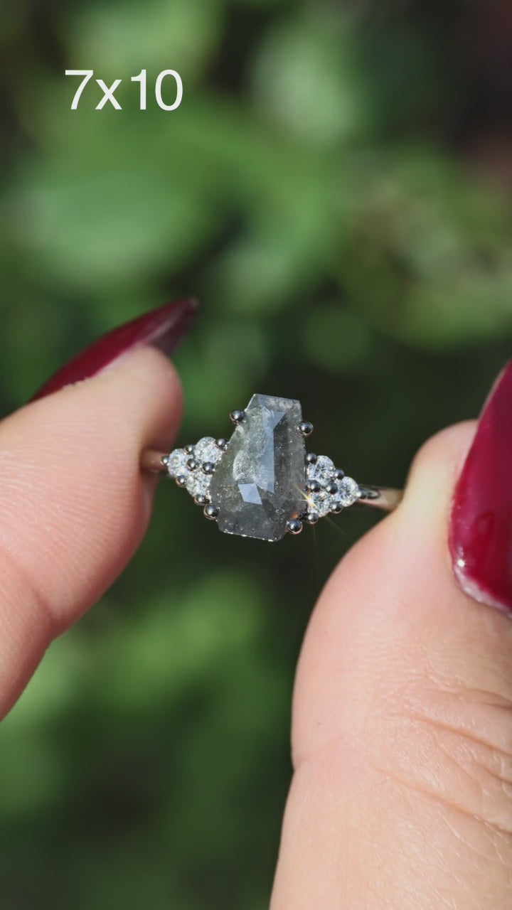 ⟢ Center Stone: Coffin Shaped Salt and Pepper Diamond, 6*8mm
