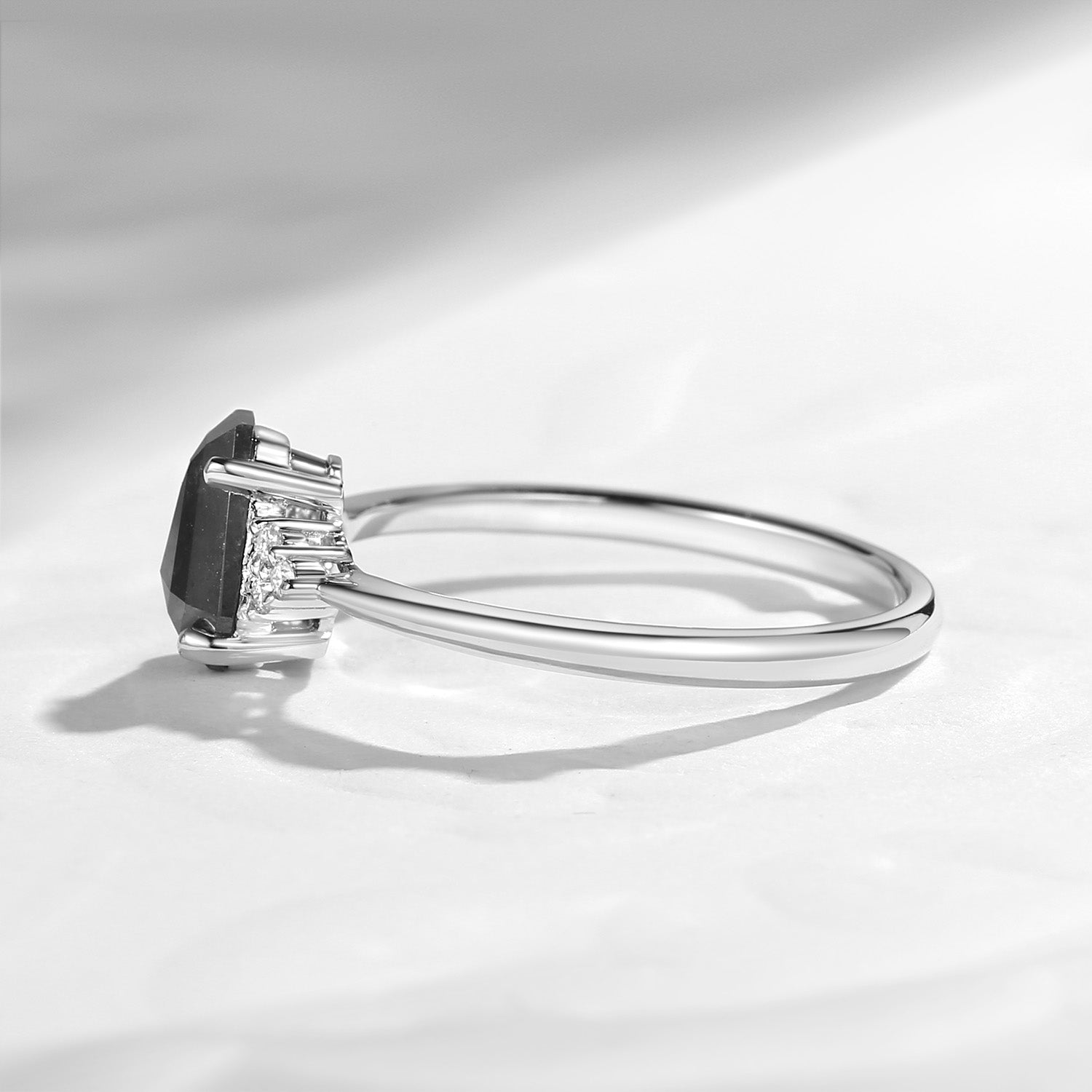 Classic Coffin Shaped Salt and Pepper Diamond Engagement Ring Rose Gold Hexagon Engagement Ring Unique Cluster Ring Solitaire Ring