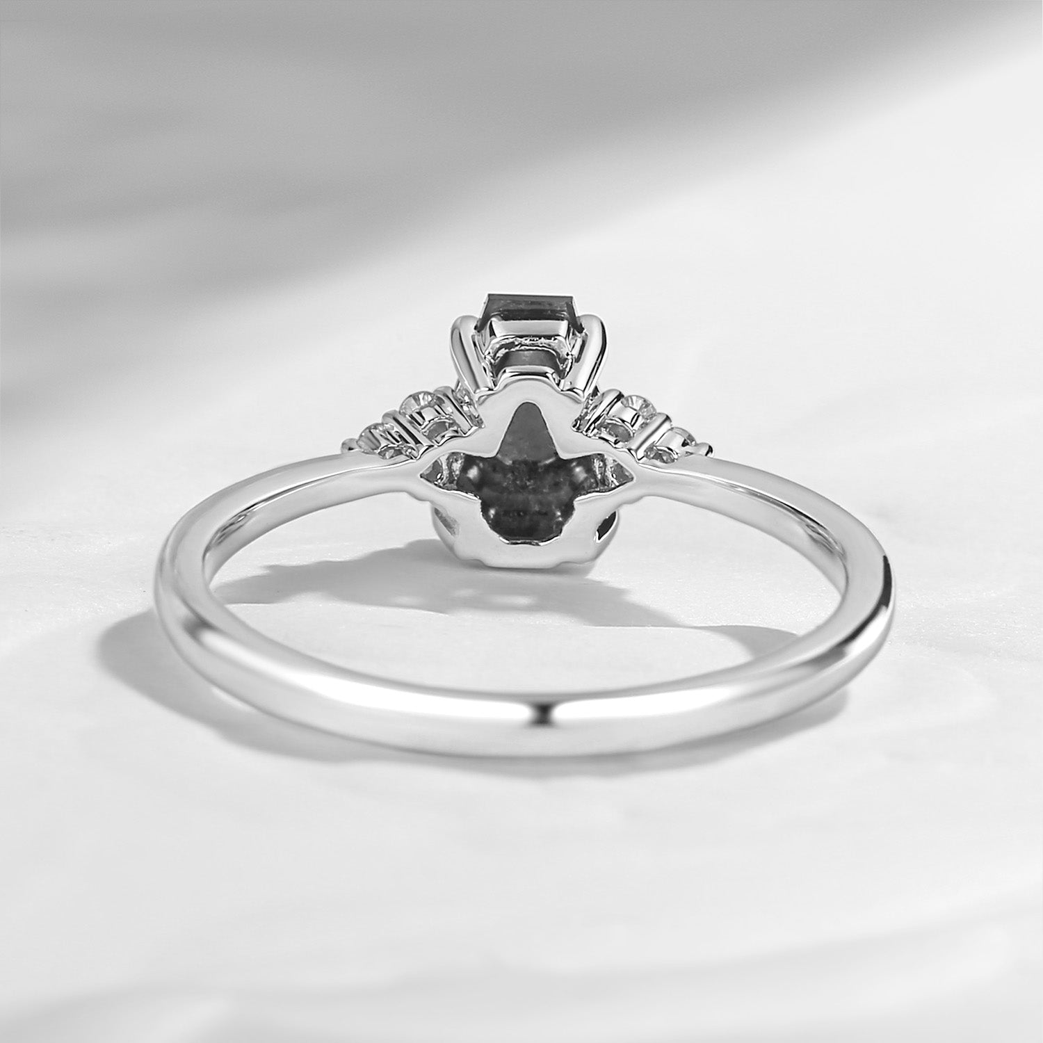 Classic Coffin Shaped Salt and Pepper Diamond Engagement Ring