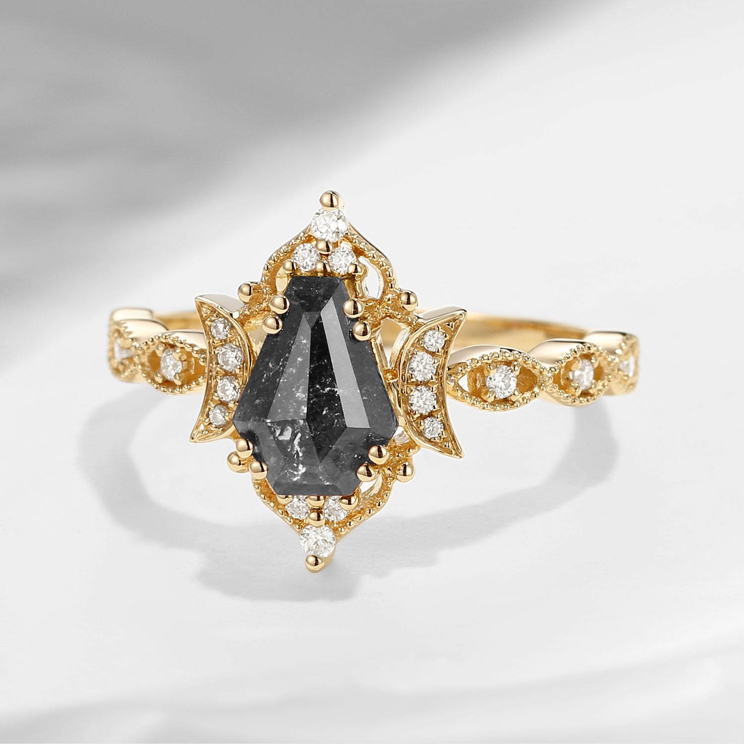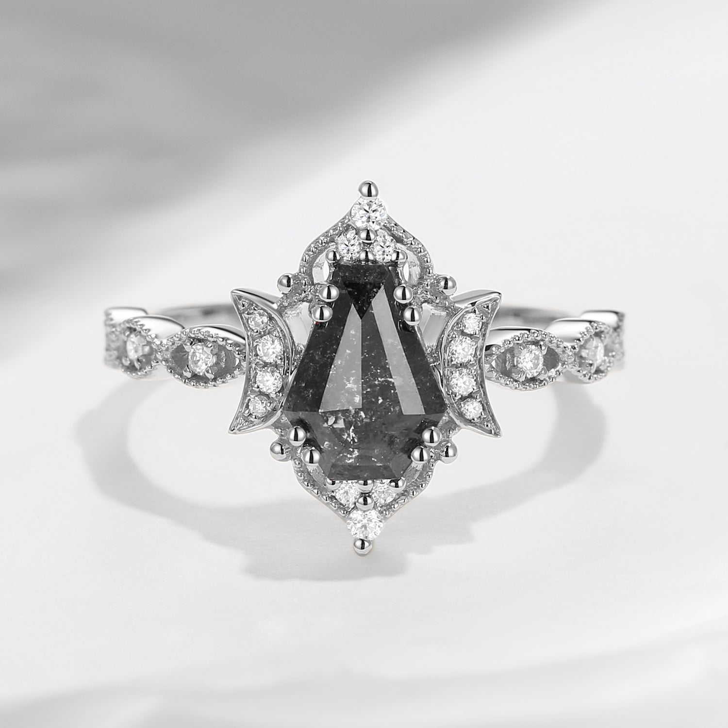 Crescent Moon | Coffin Cut Salt And Pepper Diamond Engagement Ring