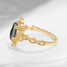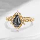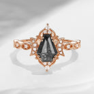 Crescent Moon | Coffin Cut Salt & Pepper Diamond Engagement Ring Unique Engagement Ring