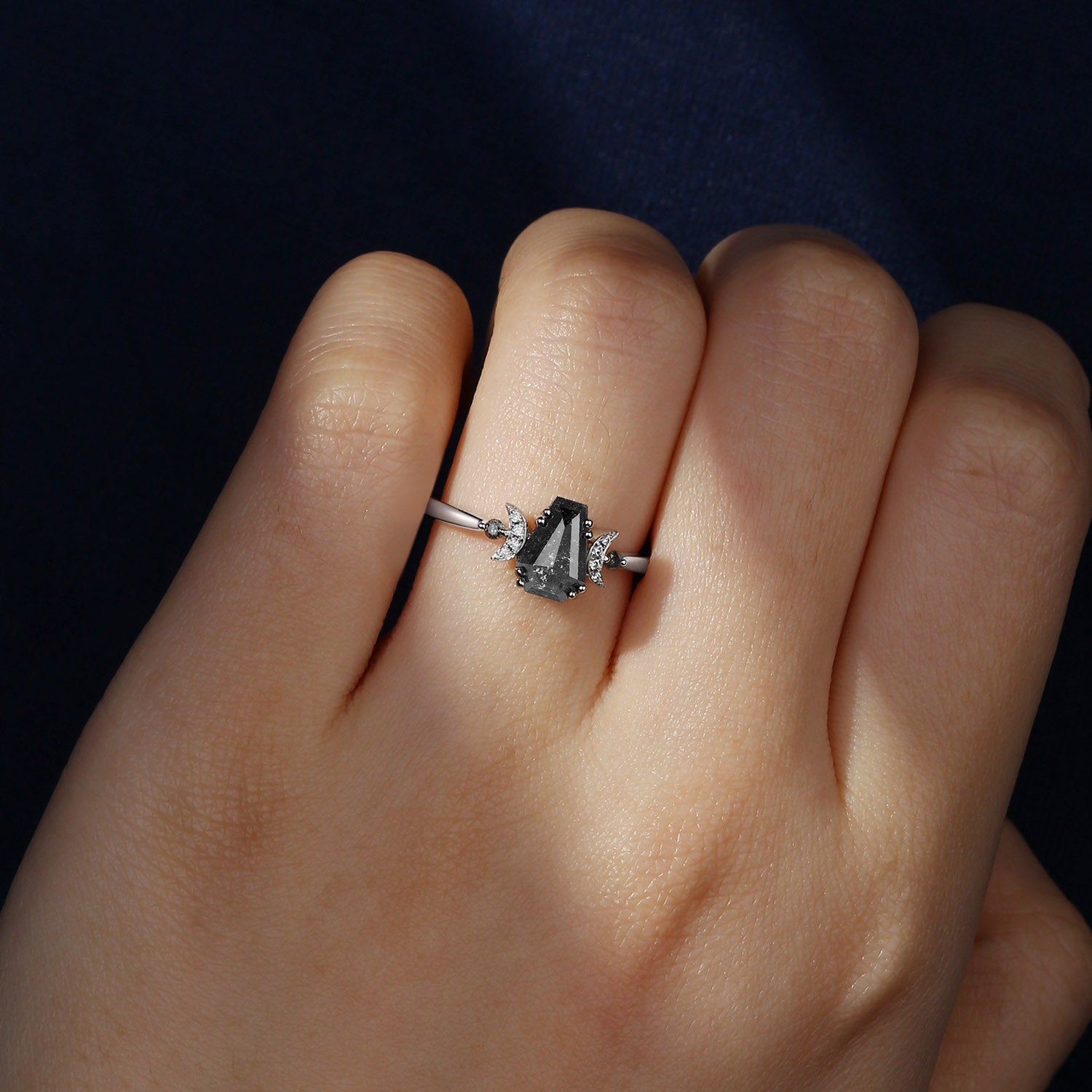 Crescent Moon | Coffin Salt and Pepper Diamond Classic Engagement Ring