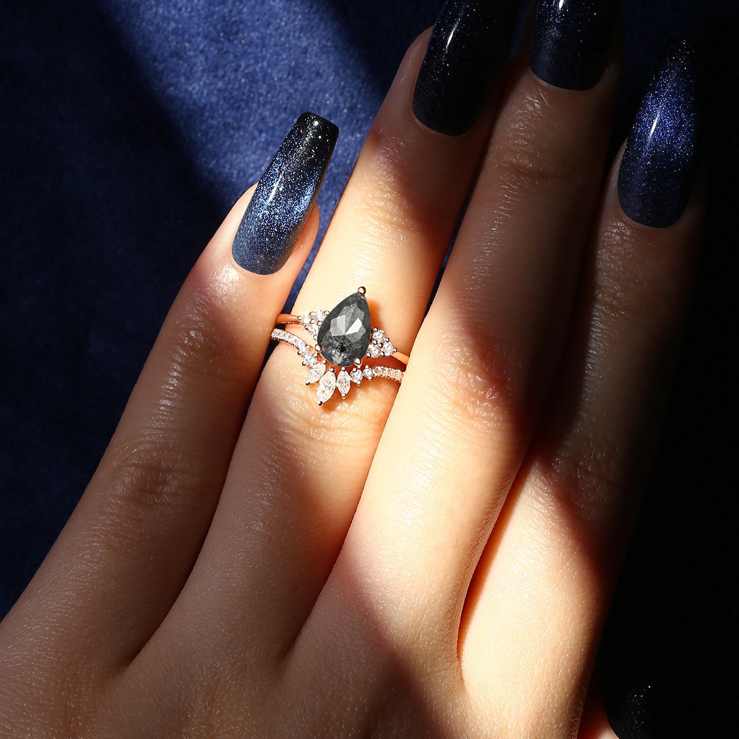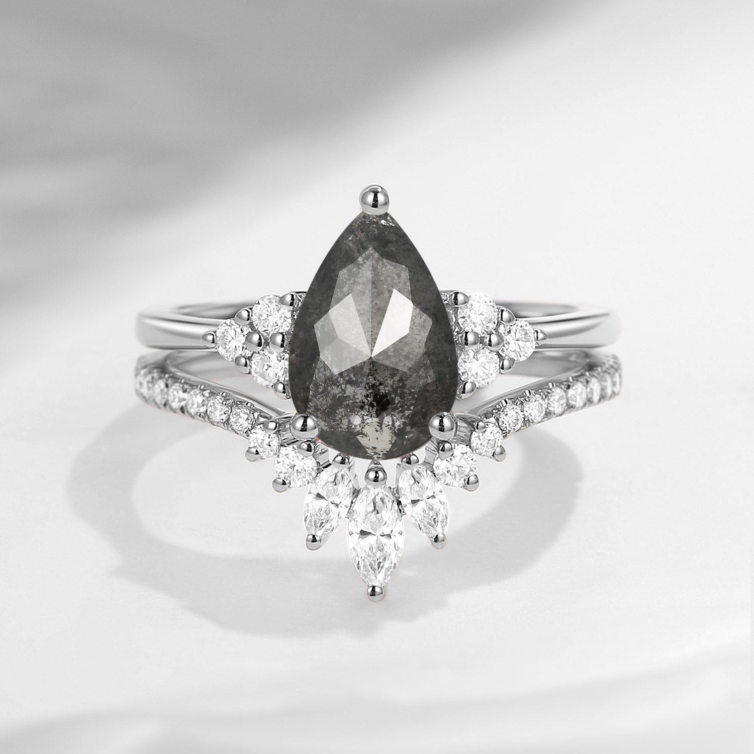 Salt And Pepper Diamond Engagement Ring White Gold Pear Shaped Diamond Bridal Set 2cps Cluster Wedding Ring Unique Galaxy Anniversary Ring