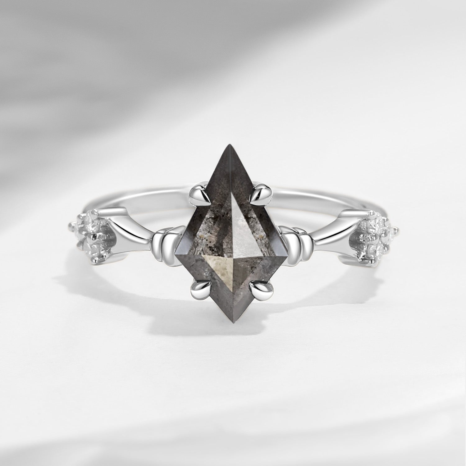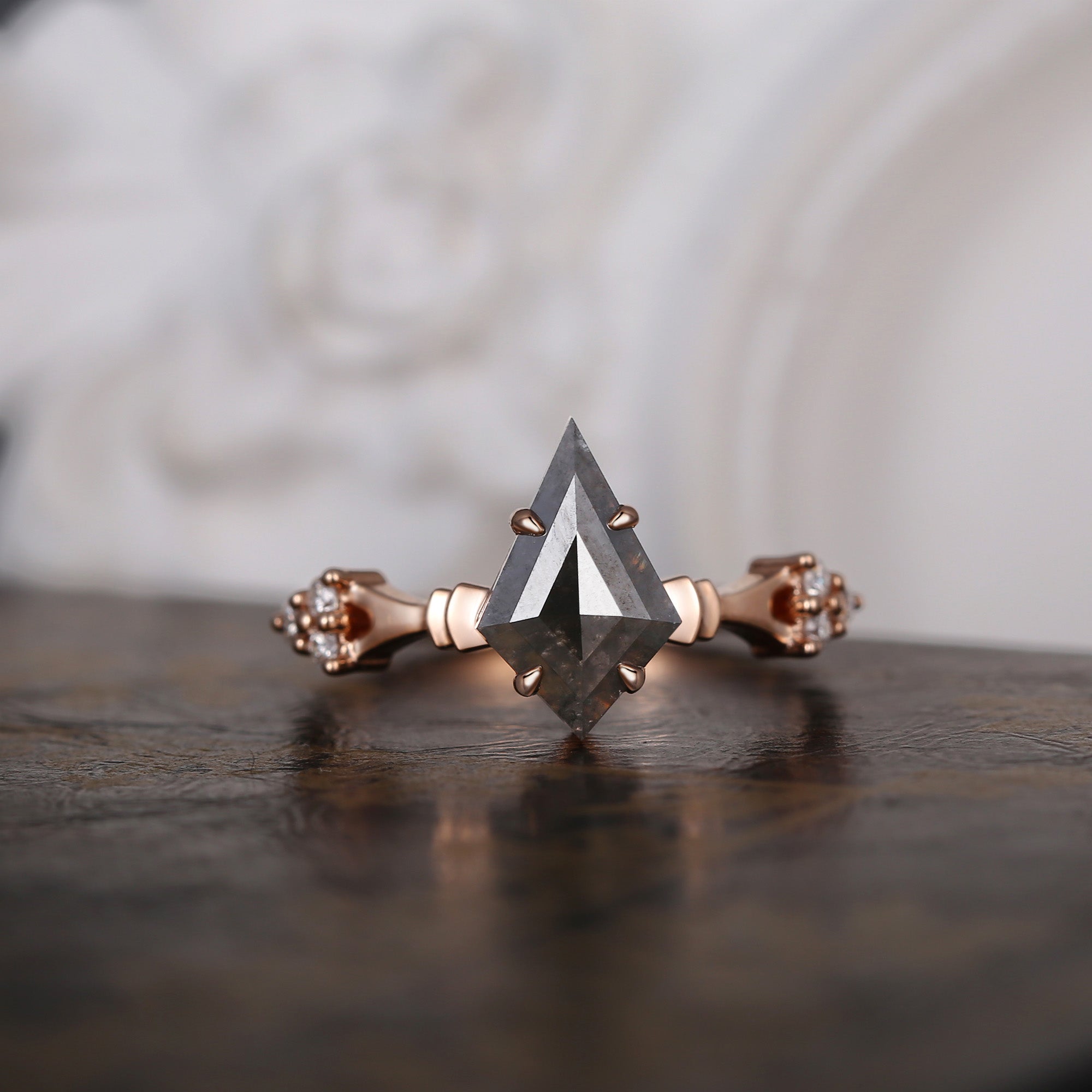 Vintage Inspired Kite Cut Salt and Pepper Diamond Engagement Ring