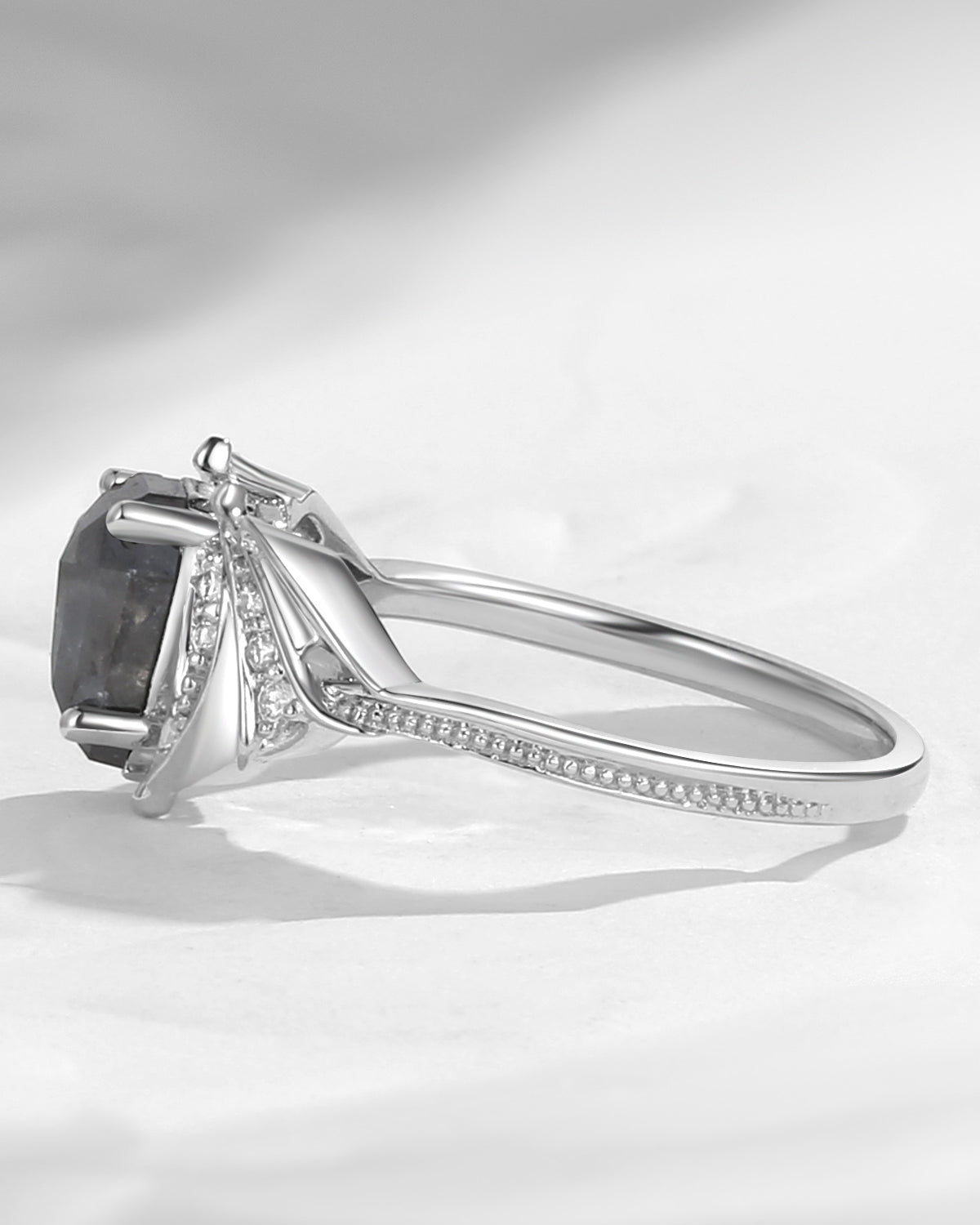 Salt and Pepper Diamonds are diamonds - but more unique, mystic and on top of that, one-of-a-kind! They are like a true reflection of love, with each texture and inclusion resembling the memories of a couple's journey, marking the ups and downs they've faced together. These imperfections are the most touching aspects of love, one that doesn't seek perfection but cherishes the storms and laughter shared. Wearing a Salt and Pepper Diamond engagement ring is a promise: no matter what the future holds, we will face it together, because it is those imperfect moments that make our love truly real and precious.