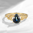 Nature Inspired Pear Shaped Natural Teal Sapphire Halo Leaf Engagement Ring