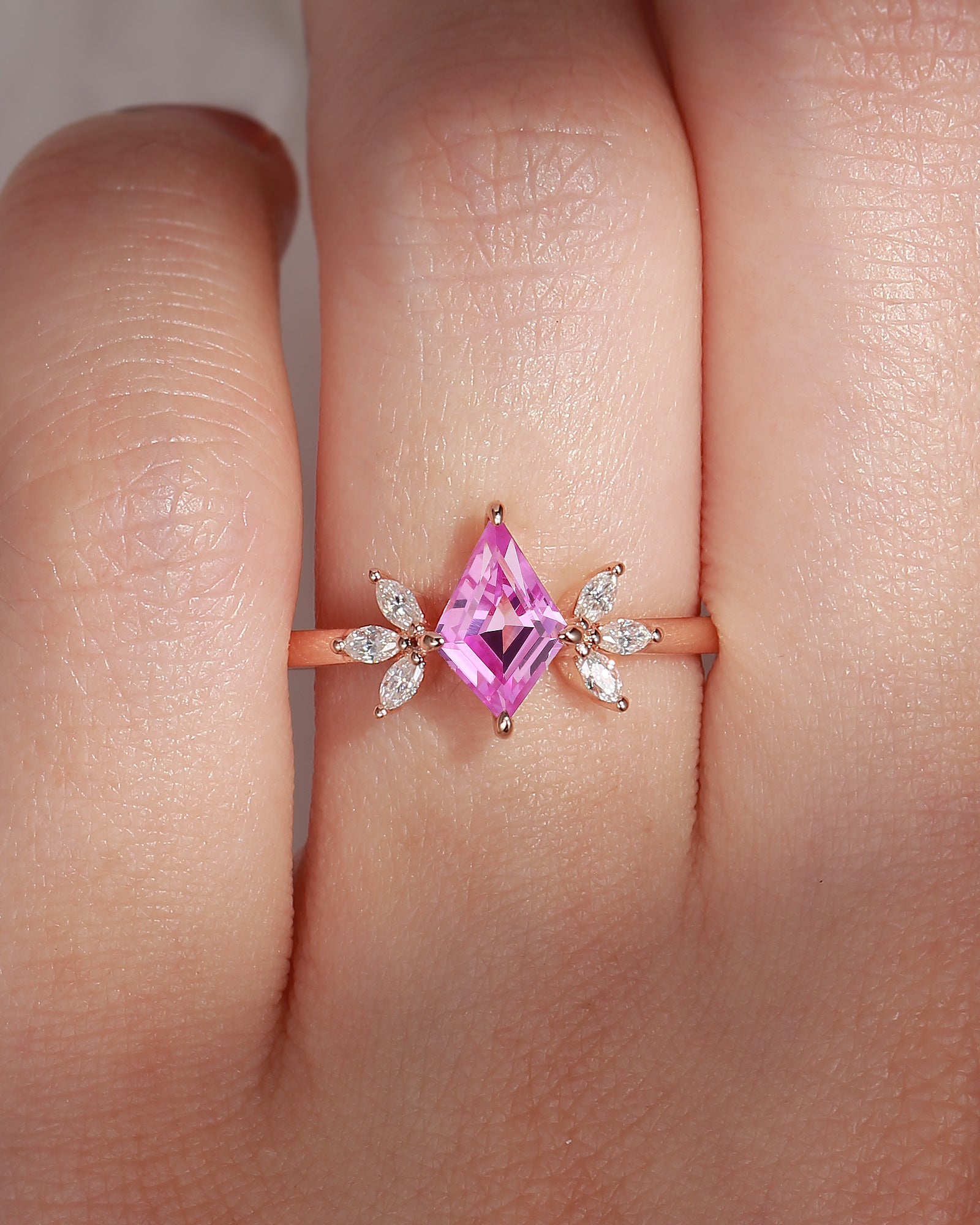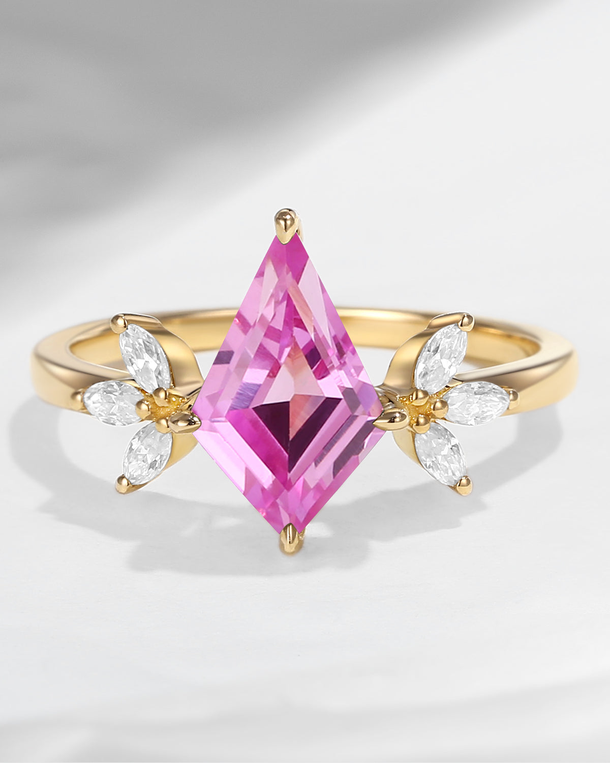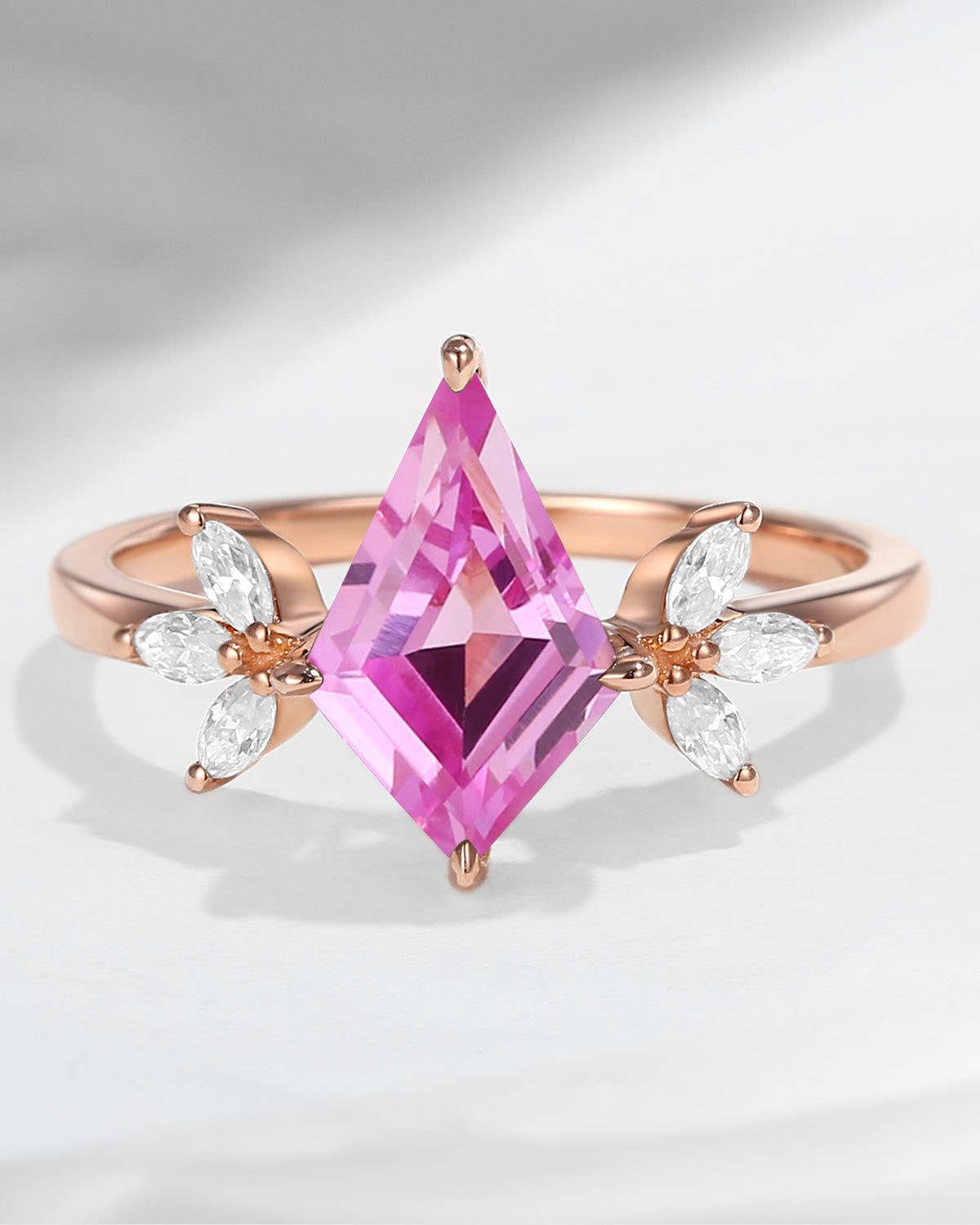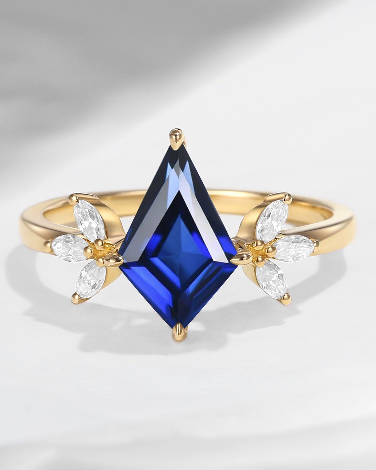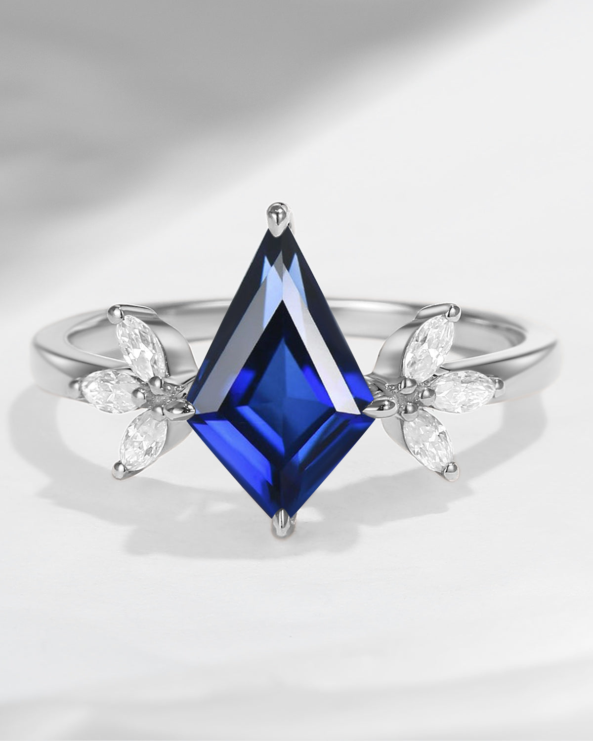 Unique Kite Shaped Lab Sapphire Butterfly Engagement Ring