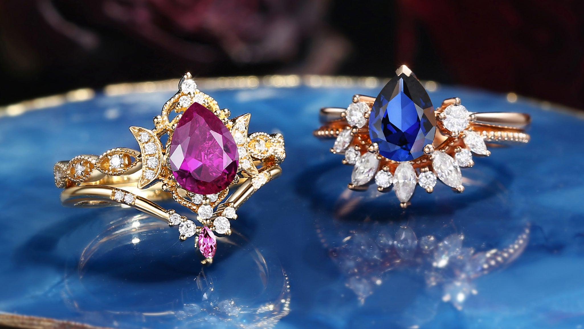 Unique Coffin Lab Sapphire Engagement Star Ring Set 2pcs - Coffin Kite