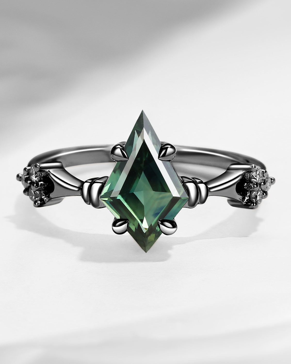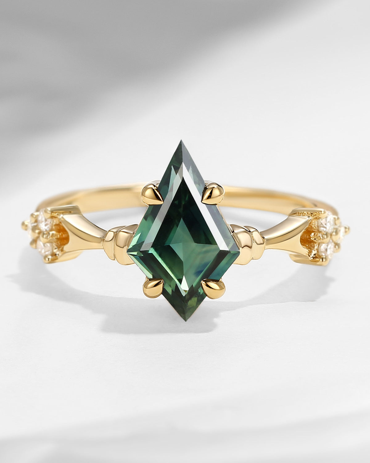Classic Kite Cut Natural Teal Sapphire Engagement Ring 2pcs