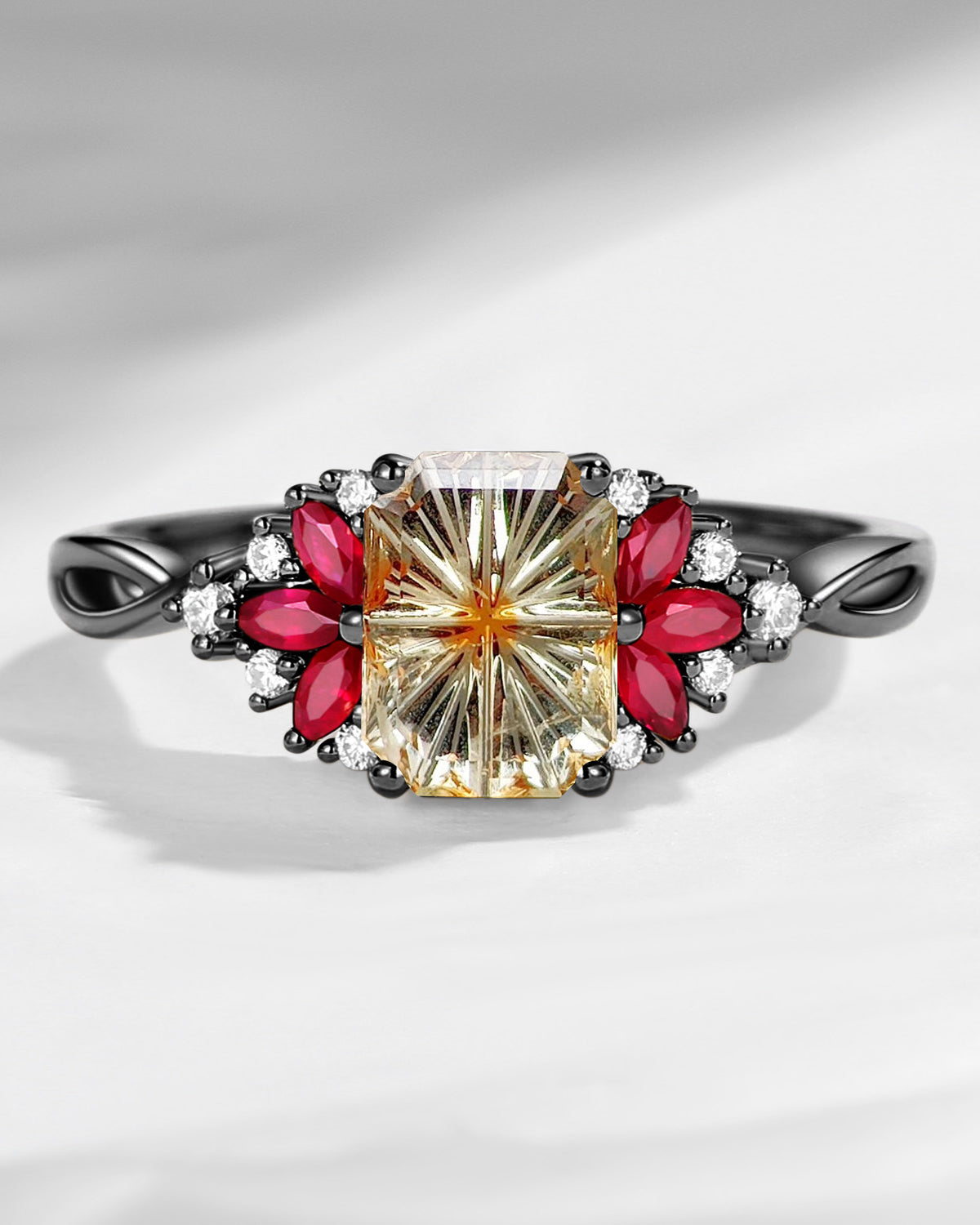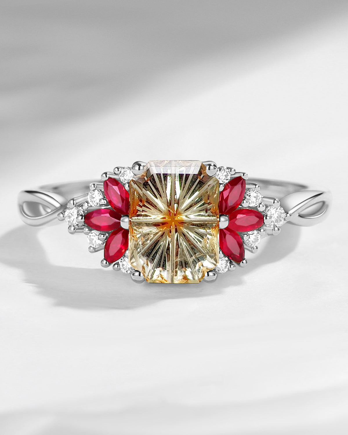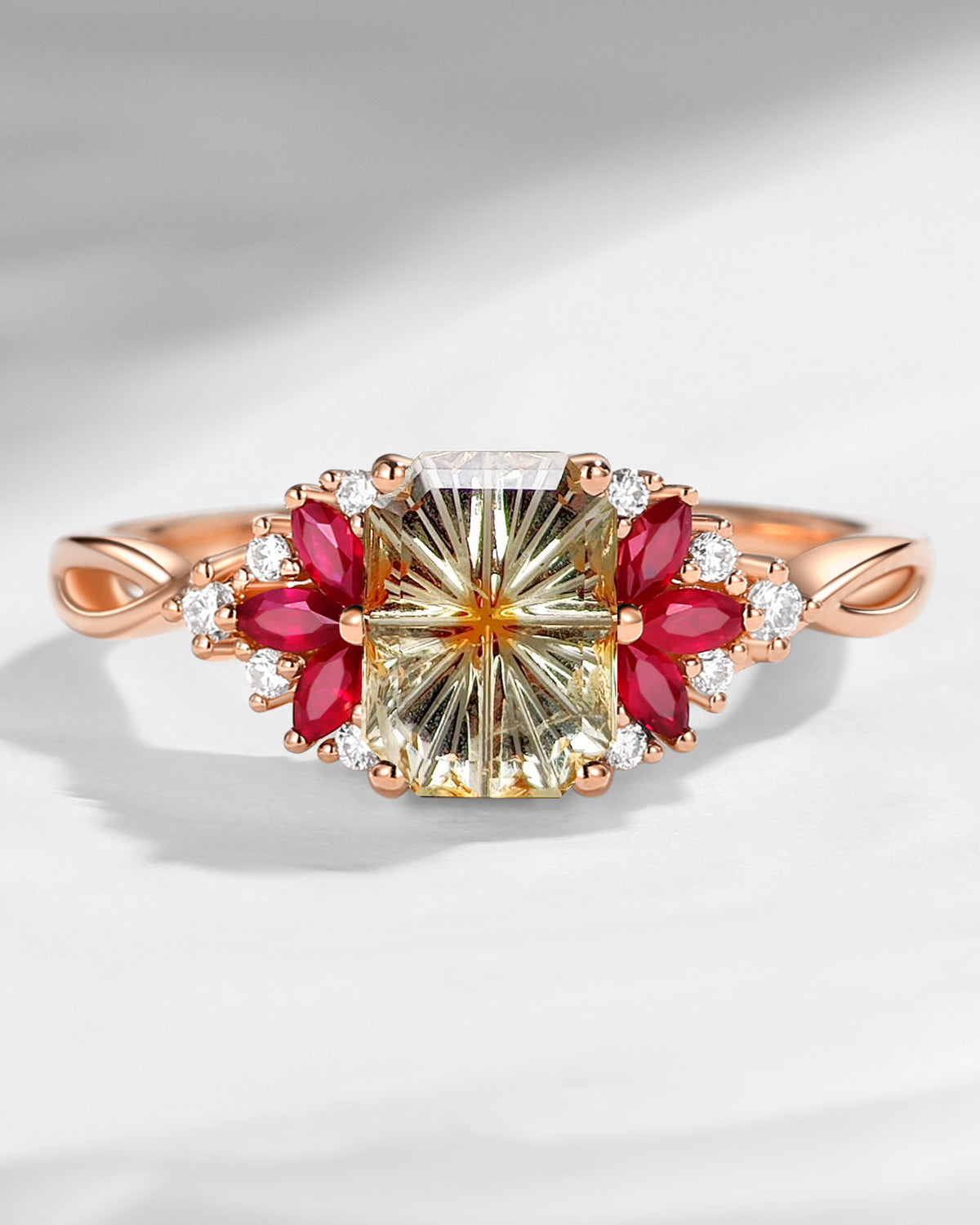 Cluster Emerald Fantasy Cut Natural Parti Sapphire Twist Engagement Ring