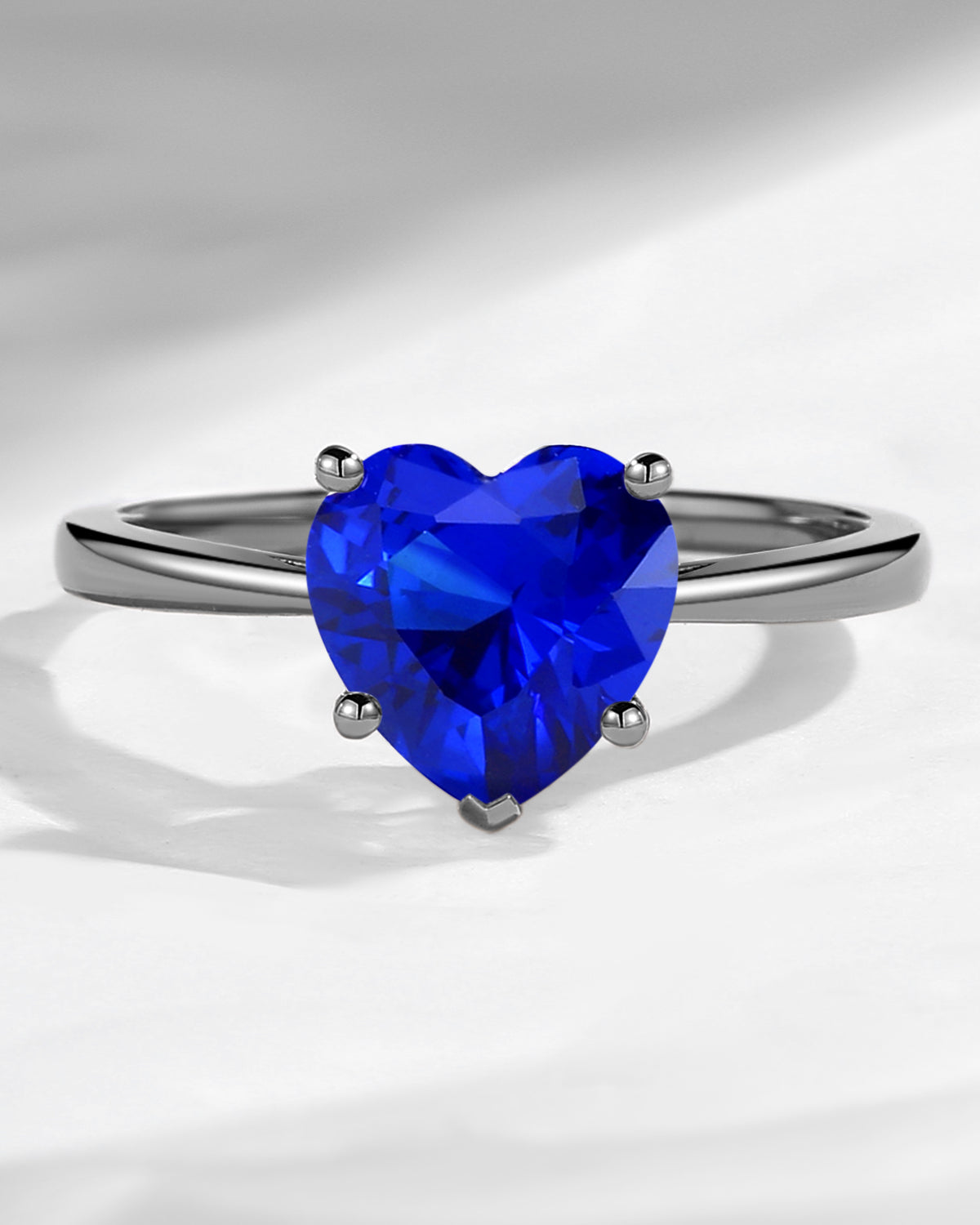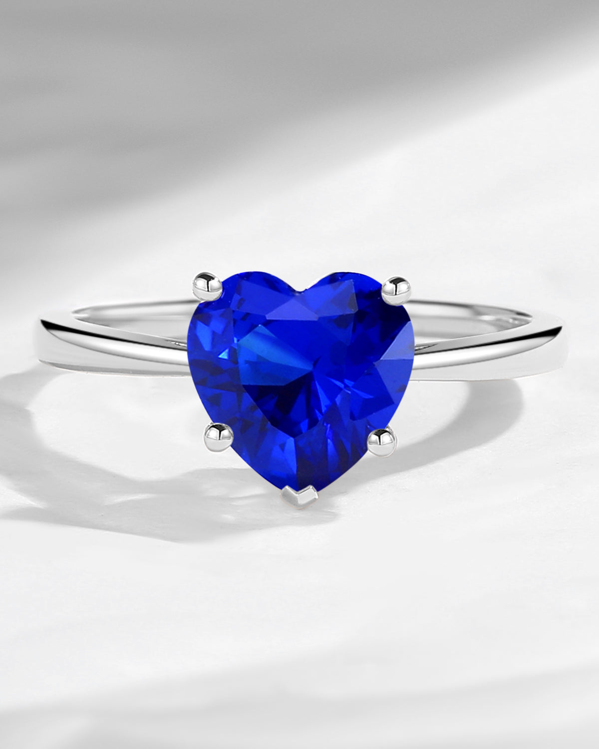 Classic Heart Shaped Solitaire Lab Sapphire Promise Ring