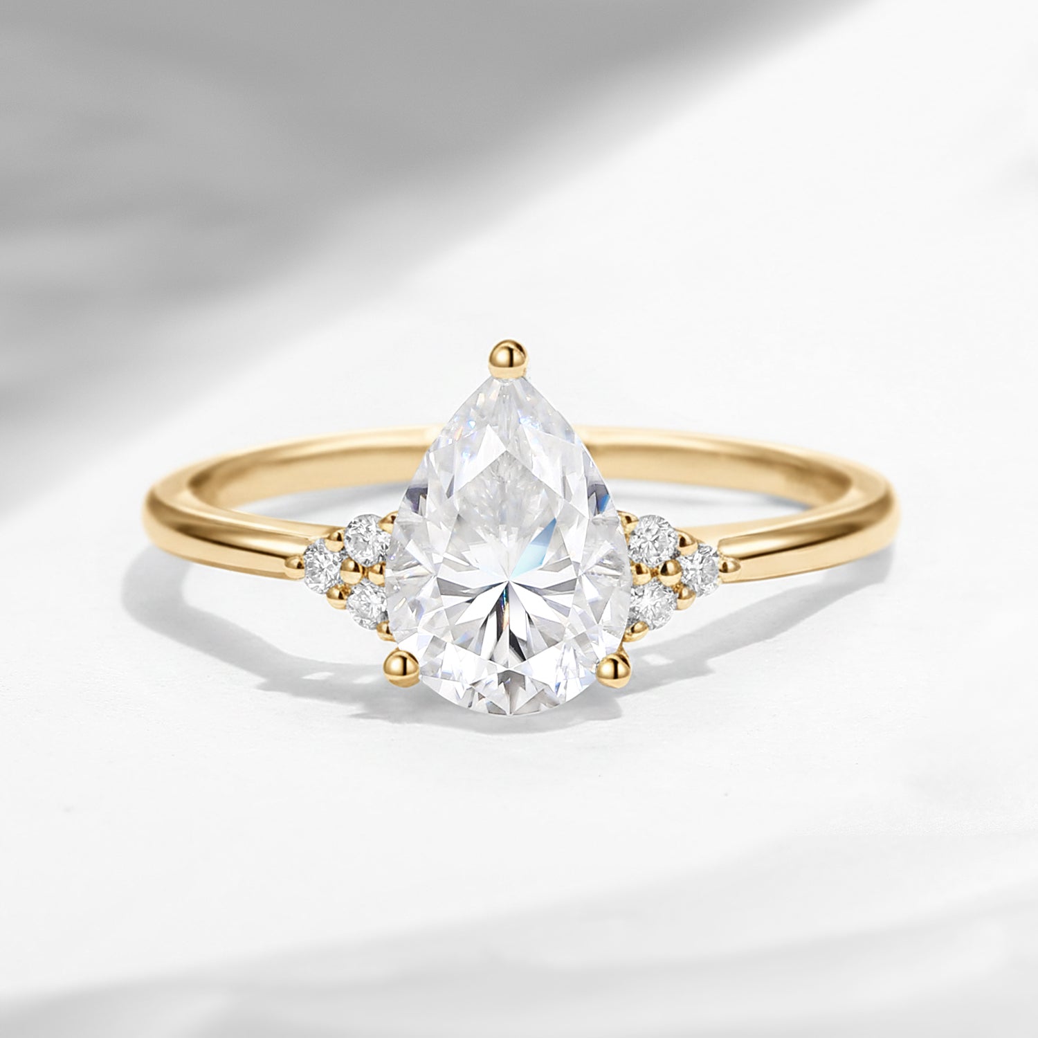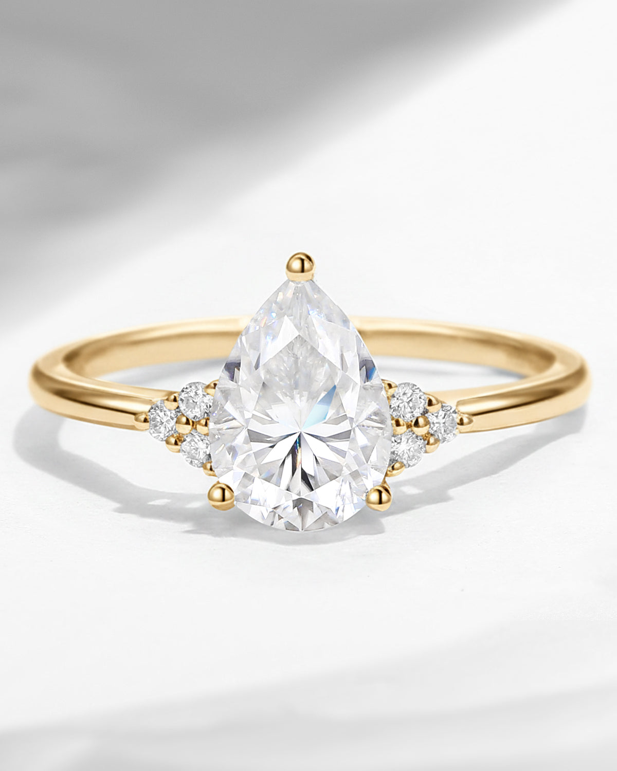 1.5ct Pear Shaped Classic Cluster Moissanite Engagement Ring Set 2pcs - Vivian