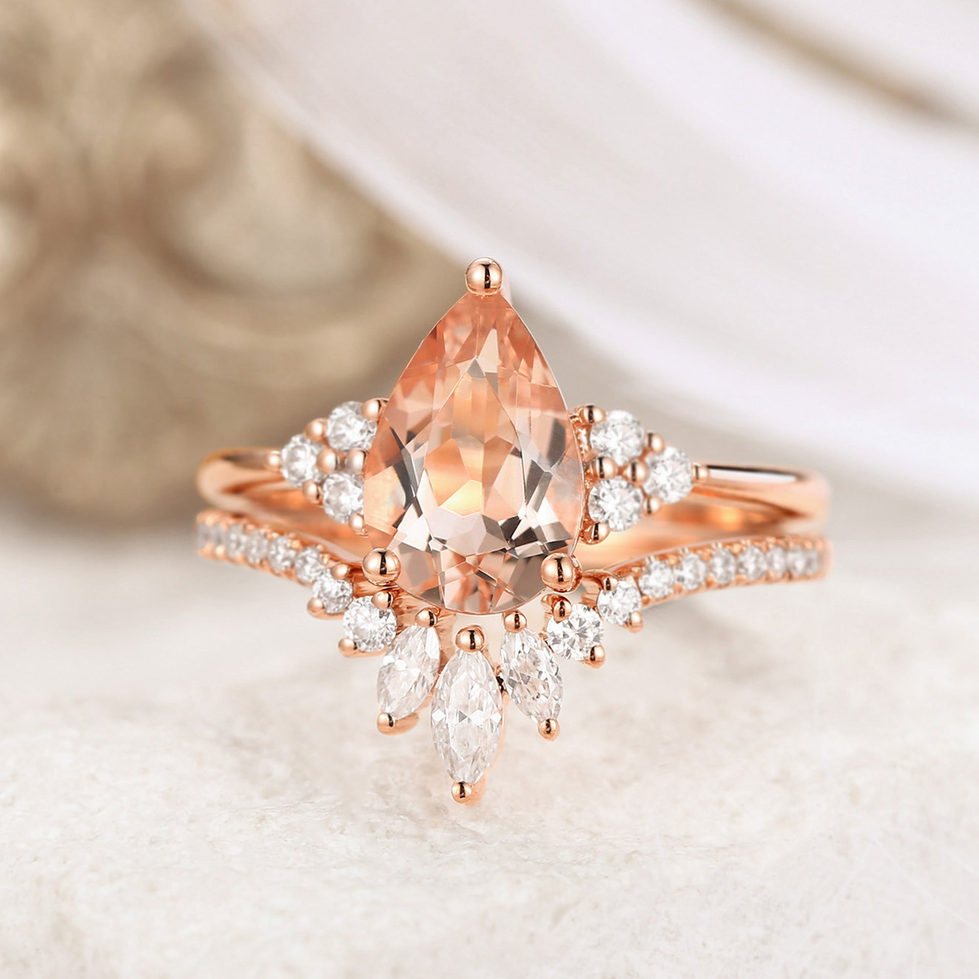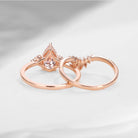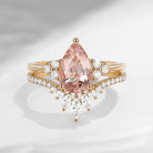 1.5ct Pear Shaped Morganite Classic Cluster Engagement Ring Set 2pcs - Vivian