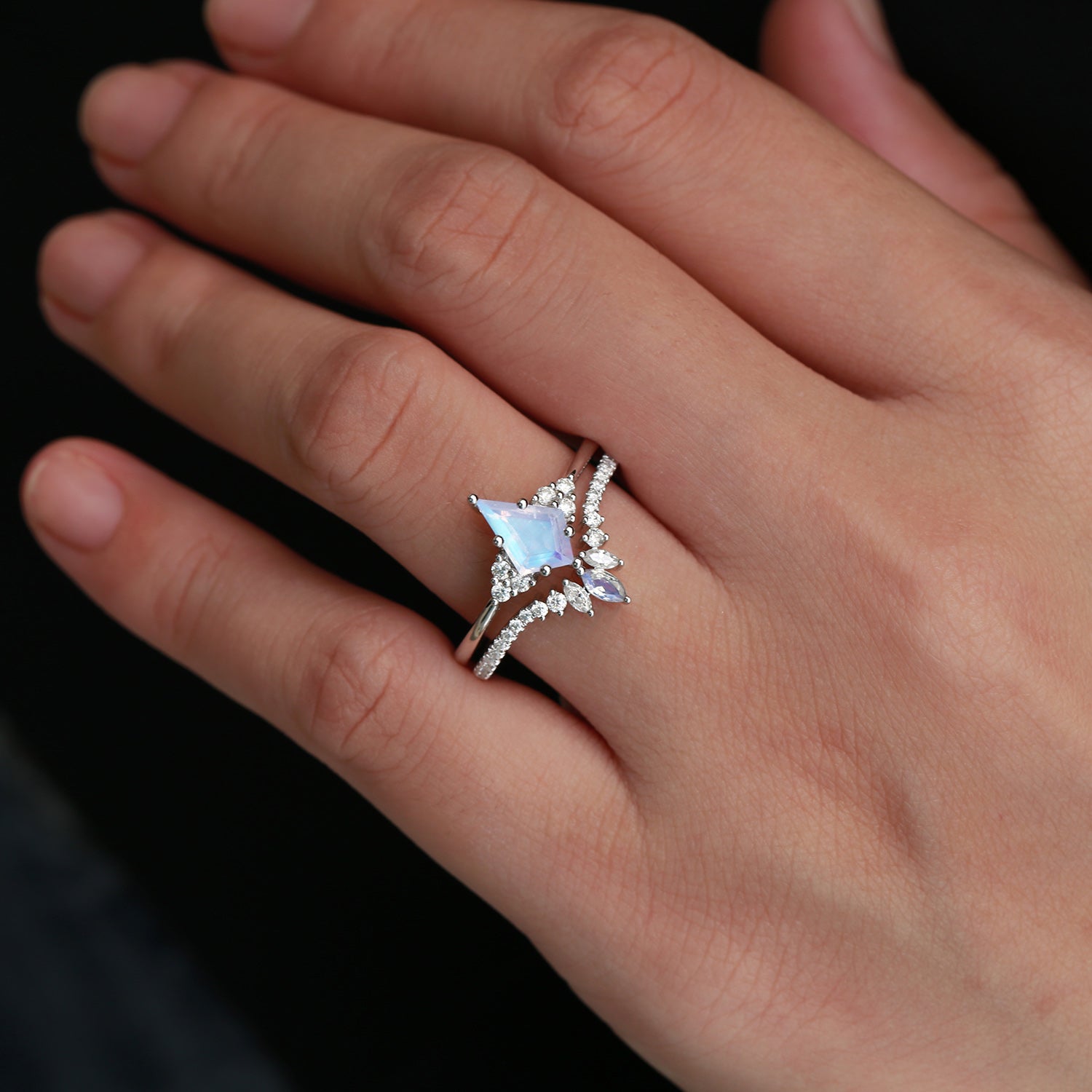 Kite Cut Moonstone Engagement Ring Set 2pcs - Electra