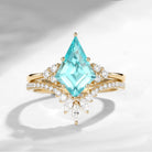 Kite Cut Lab Paraiba Classic Cluster Engagement Ring Set 2pcs - Electra
