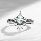 Kite Cut Green Amethyst Engagement Ring Set 2pcs