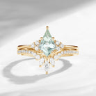 Kite Cut Green Amethyst Engagement Ring Set 2pcs - Electra