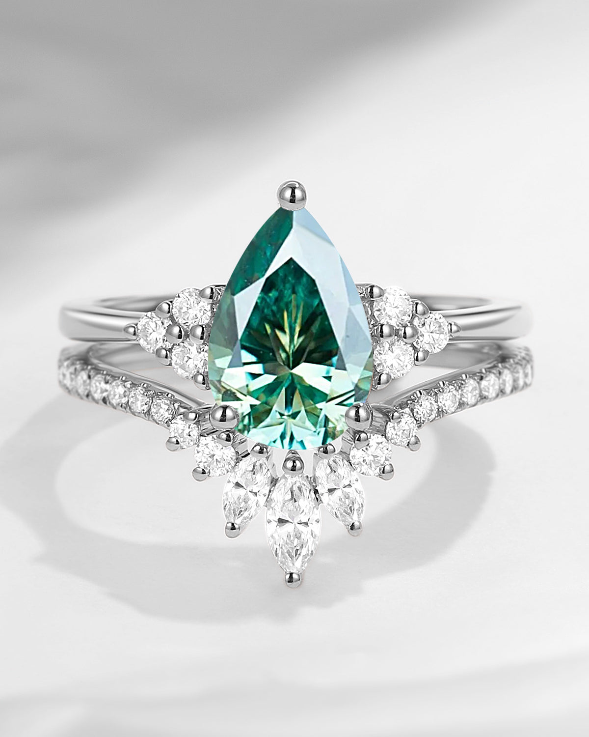 Pear Cut Lab Pink Diamond Cluster Engagement Ring Set 2pcs - Vivian