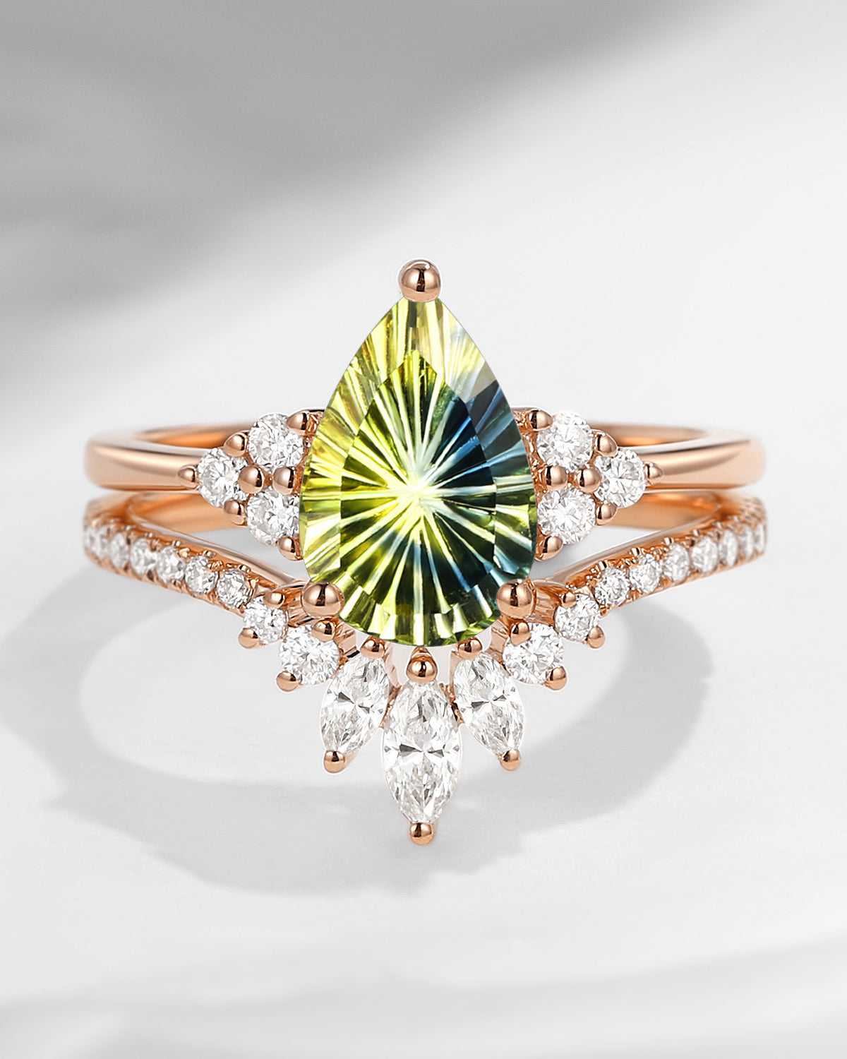 Kite Cut Peridot Engagement Ring Set 2pcs - Electra