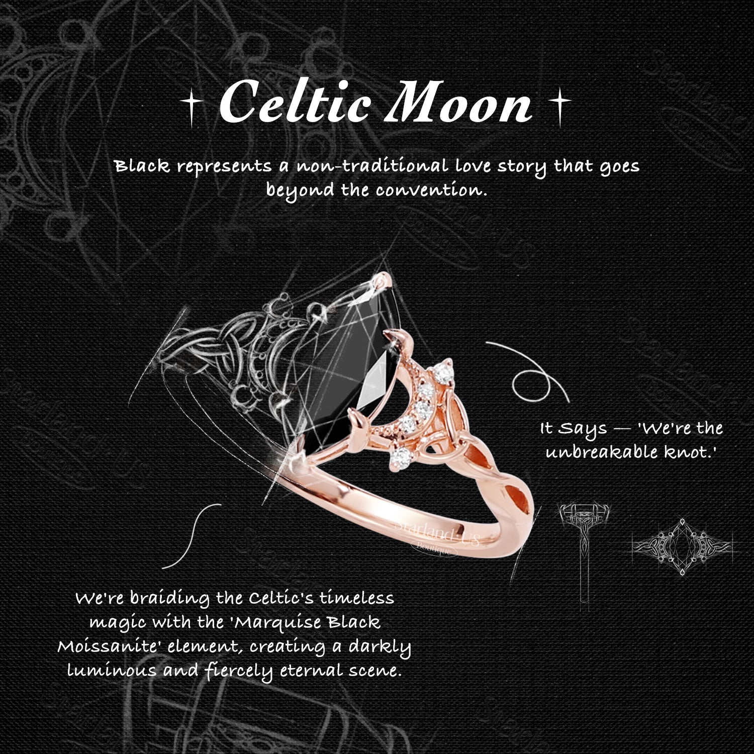 Celtic Moon | Marquise Black Moissanite Twist Engagement Ring
