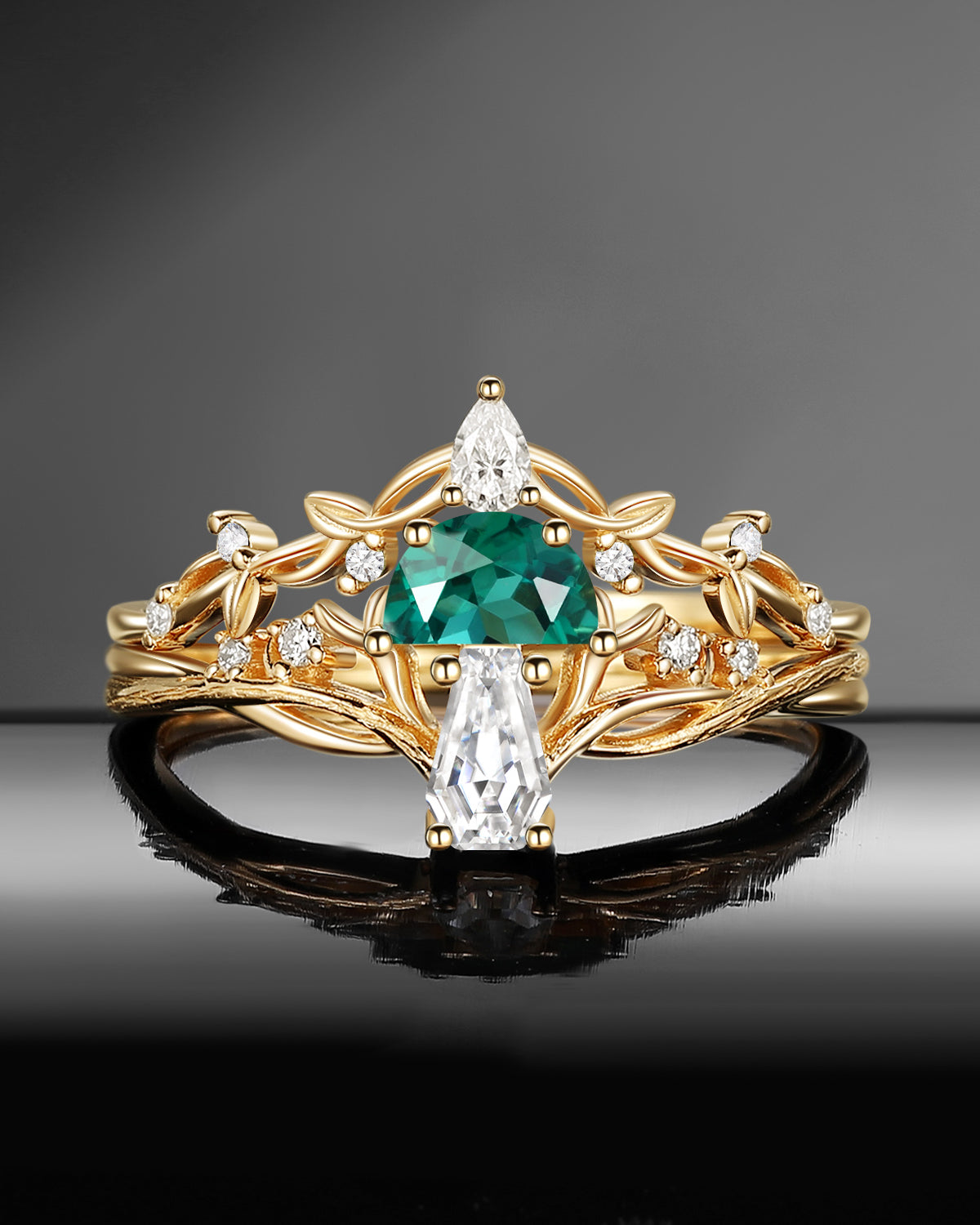 1.5ct Pear Shaped Lab Tsavorite Engagement Ring Set 2pcs - Evelyn
