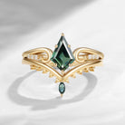 Natural Teal Sapphire Engagement Ring Unique Kite Natural Teal Sapphire Ring Vintage Bridal Set Marquise 2pcs