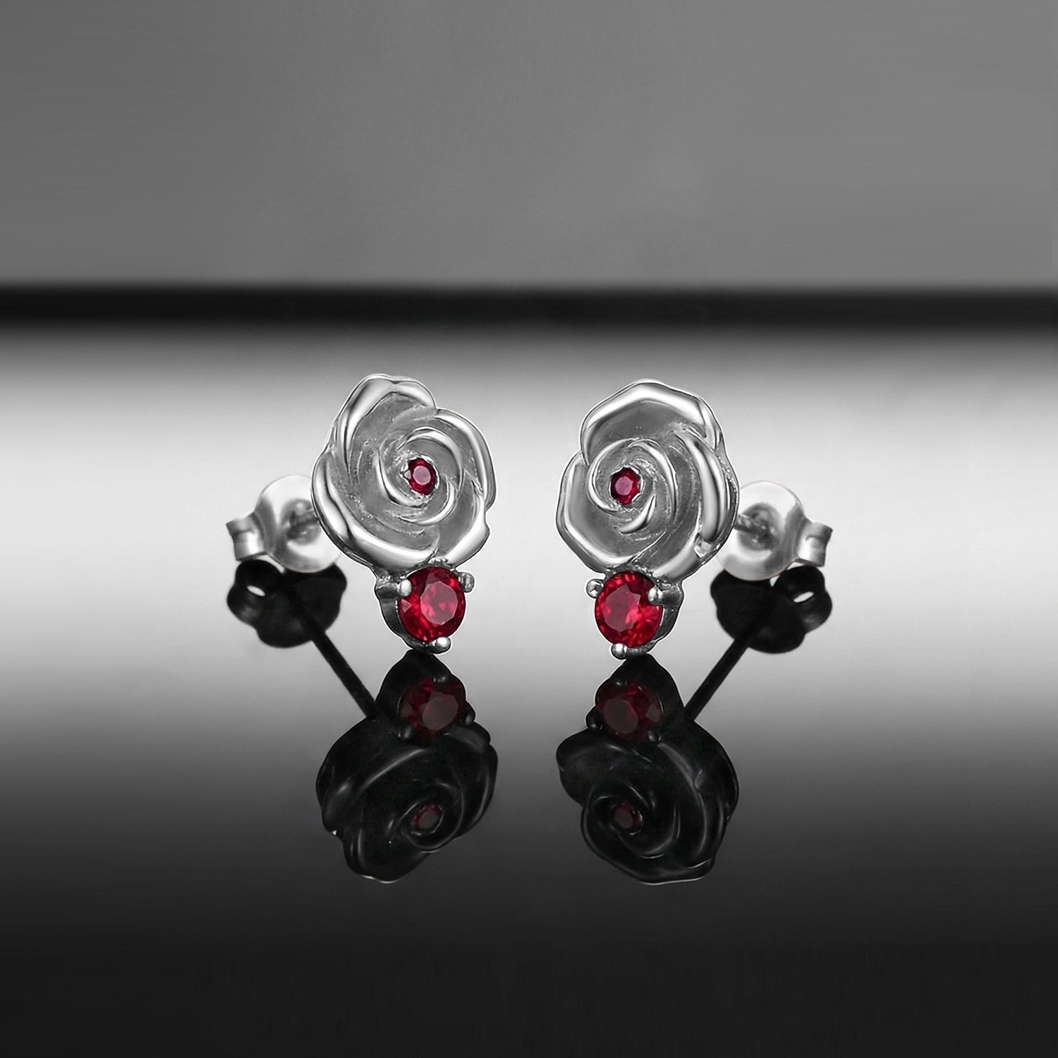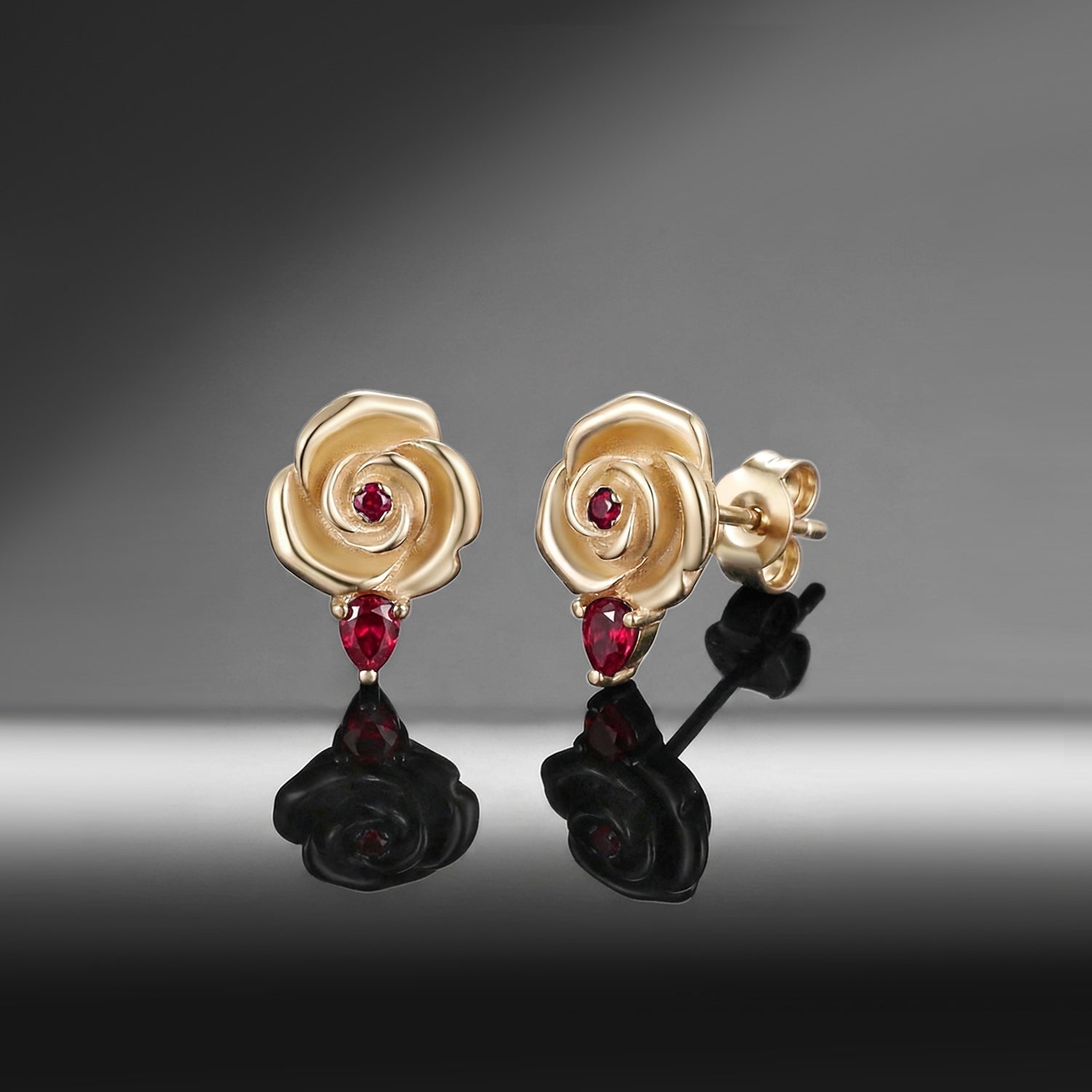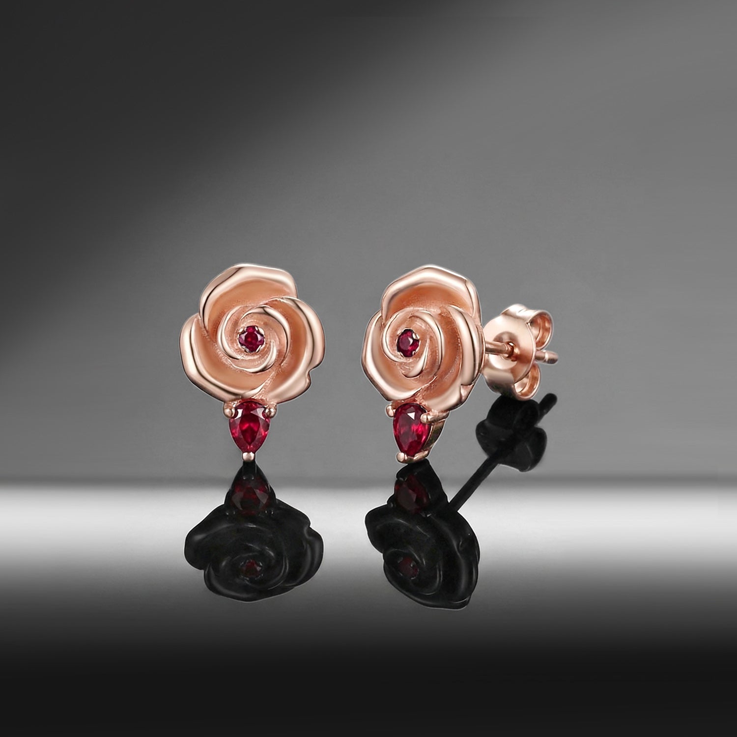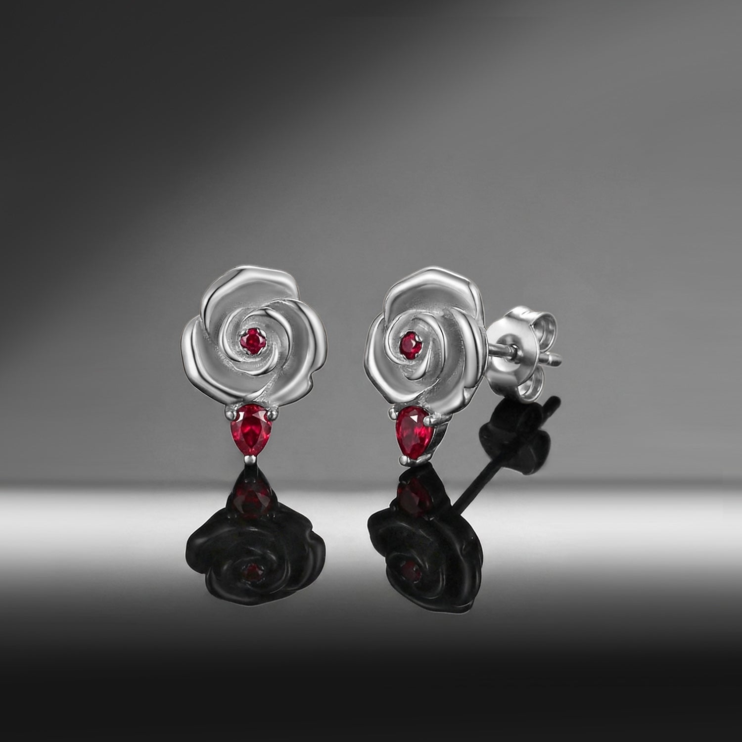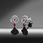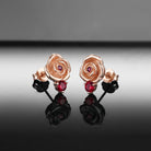 Nature Inspired Garden of Eden Dark Crimson Rose Lab Ruby Stud Earrings - 'Thorns & Roses'