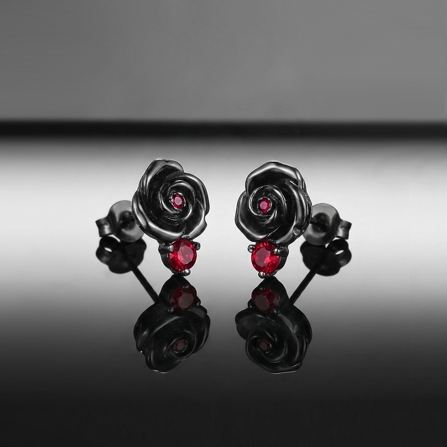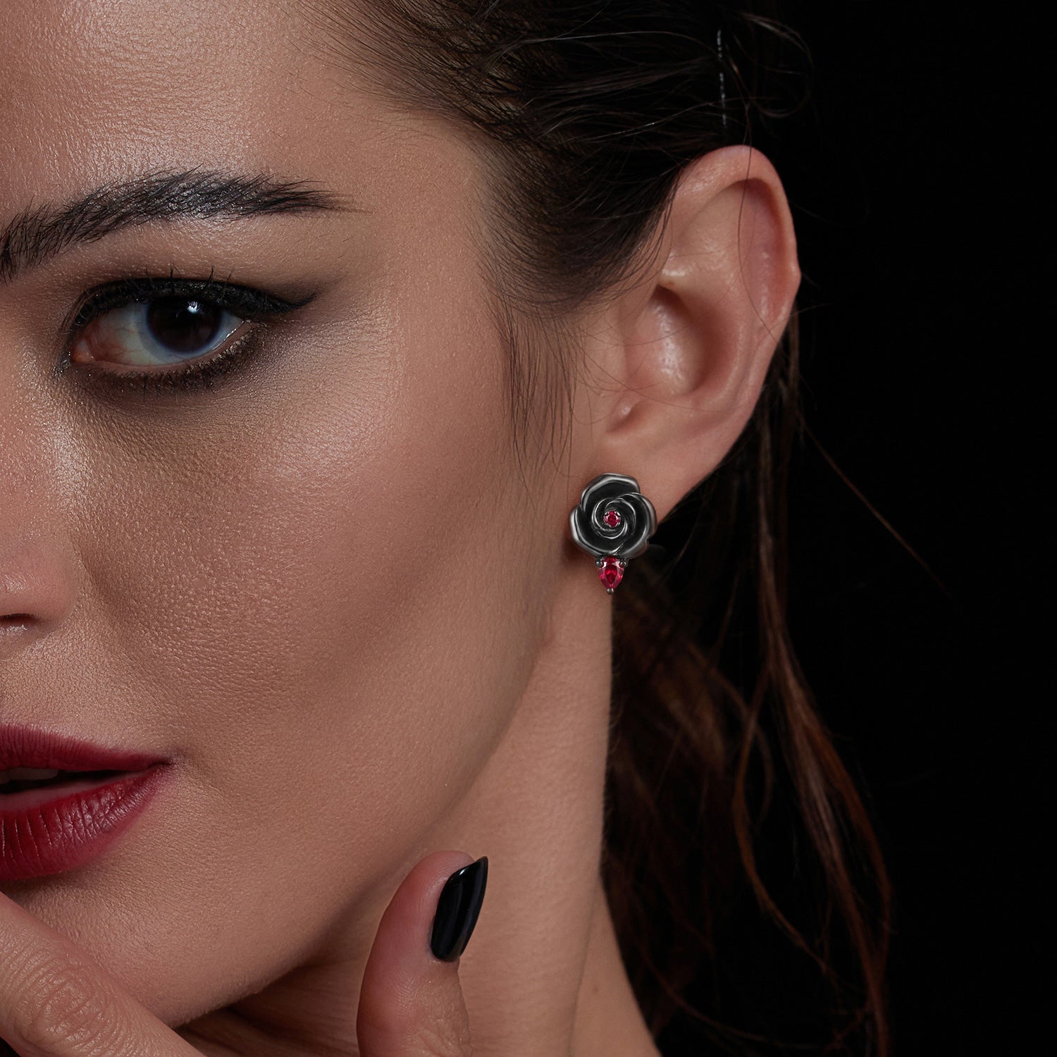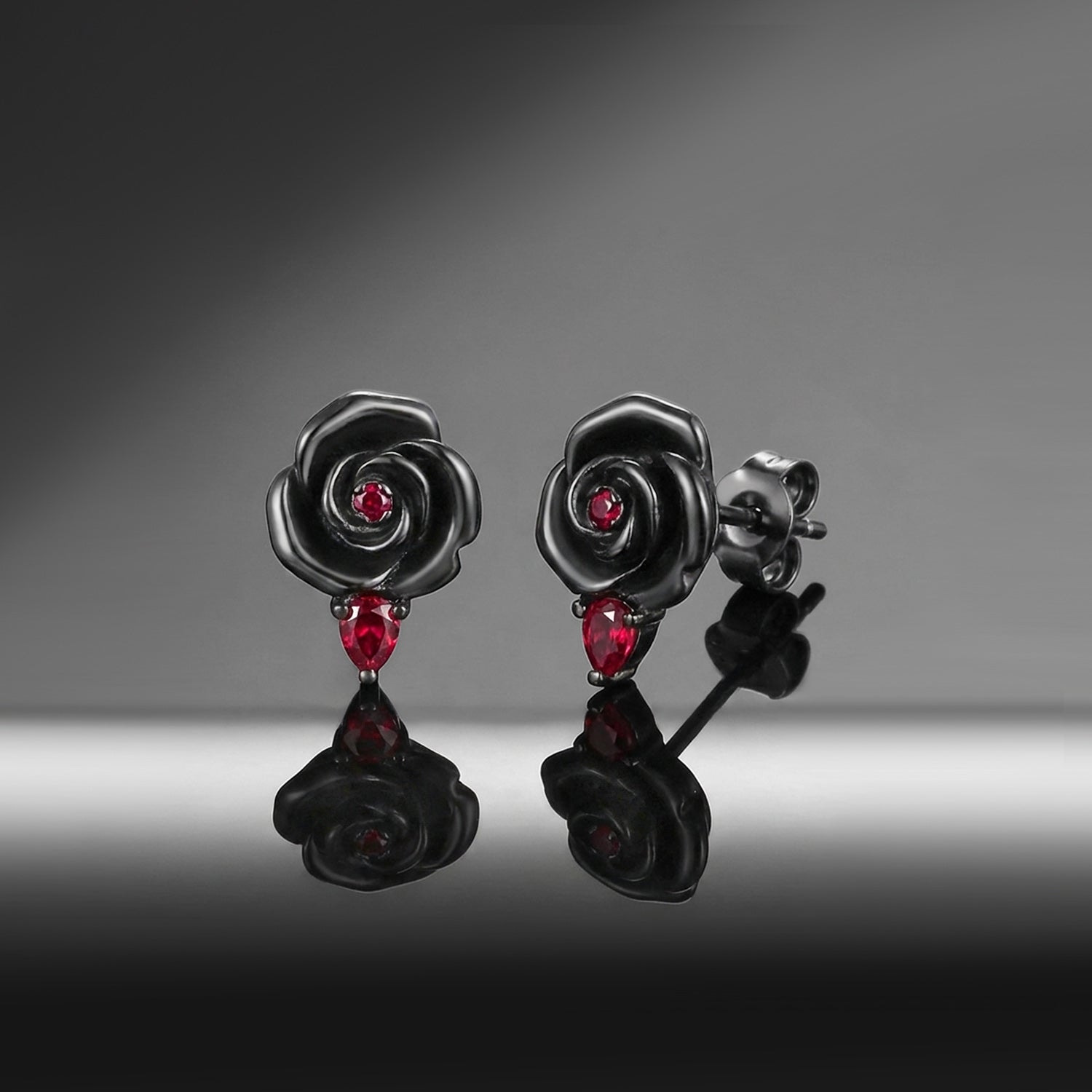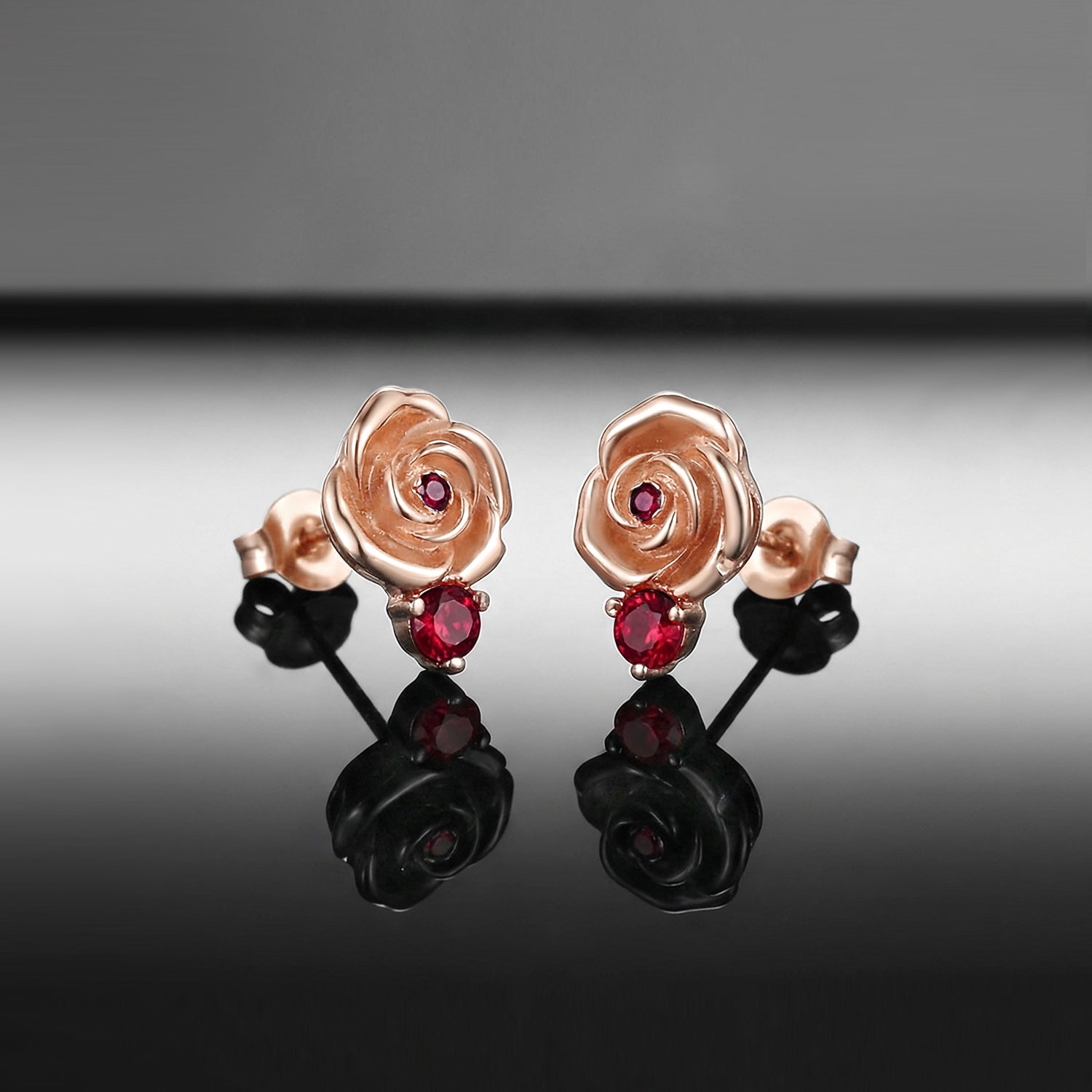 Nature Inspired Garden of Eden Dark Crimson Rose Lab Ruby Stud Earrings - 'Thorns & Roses'