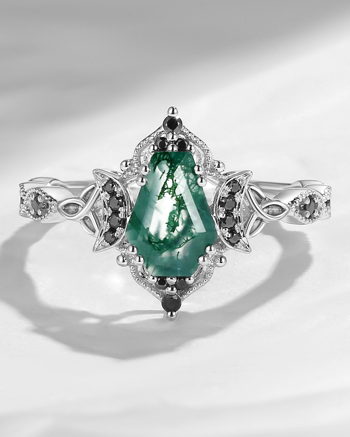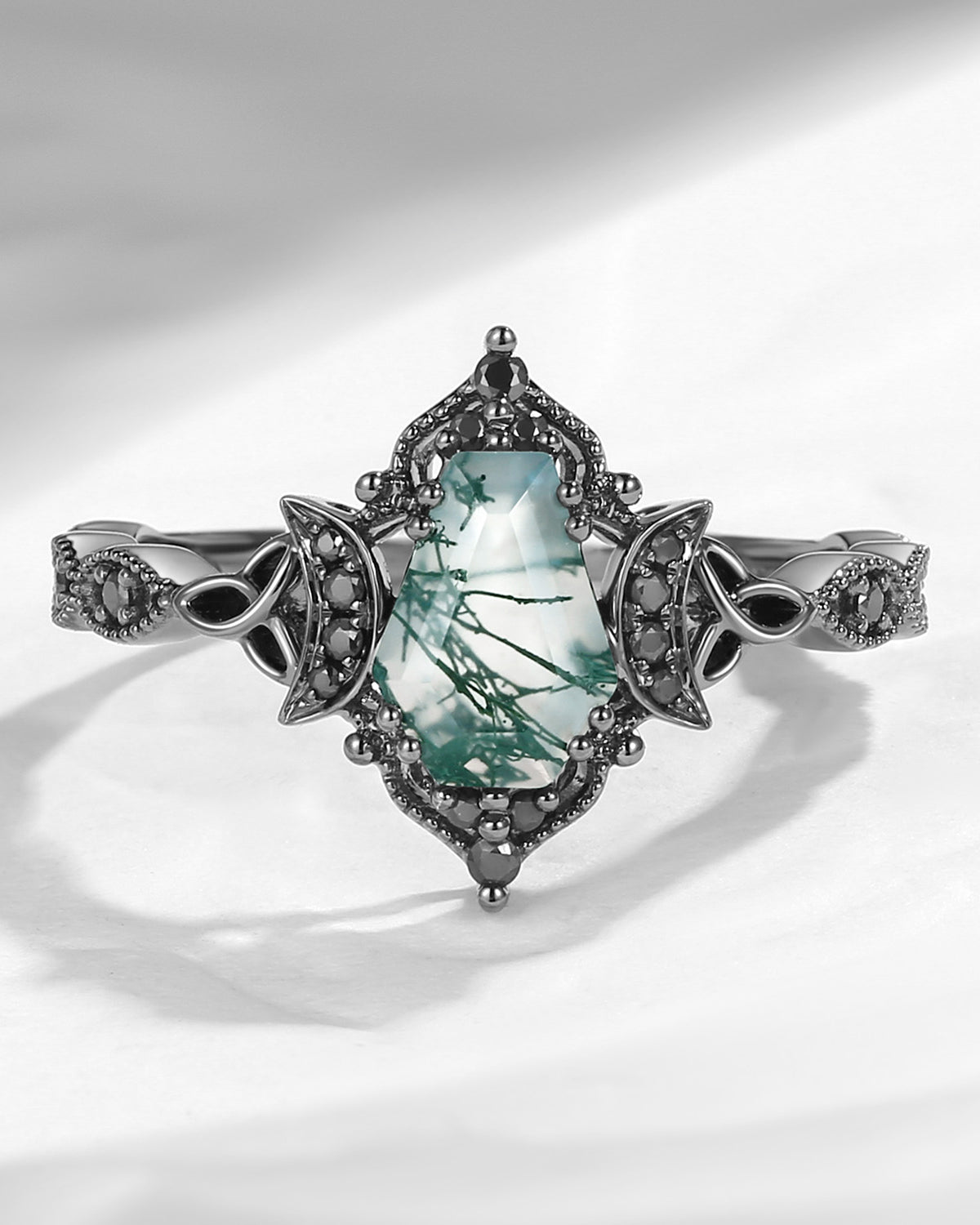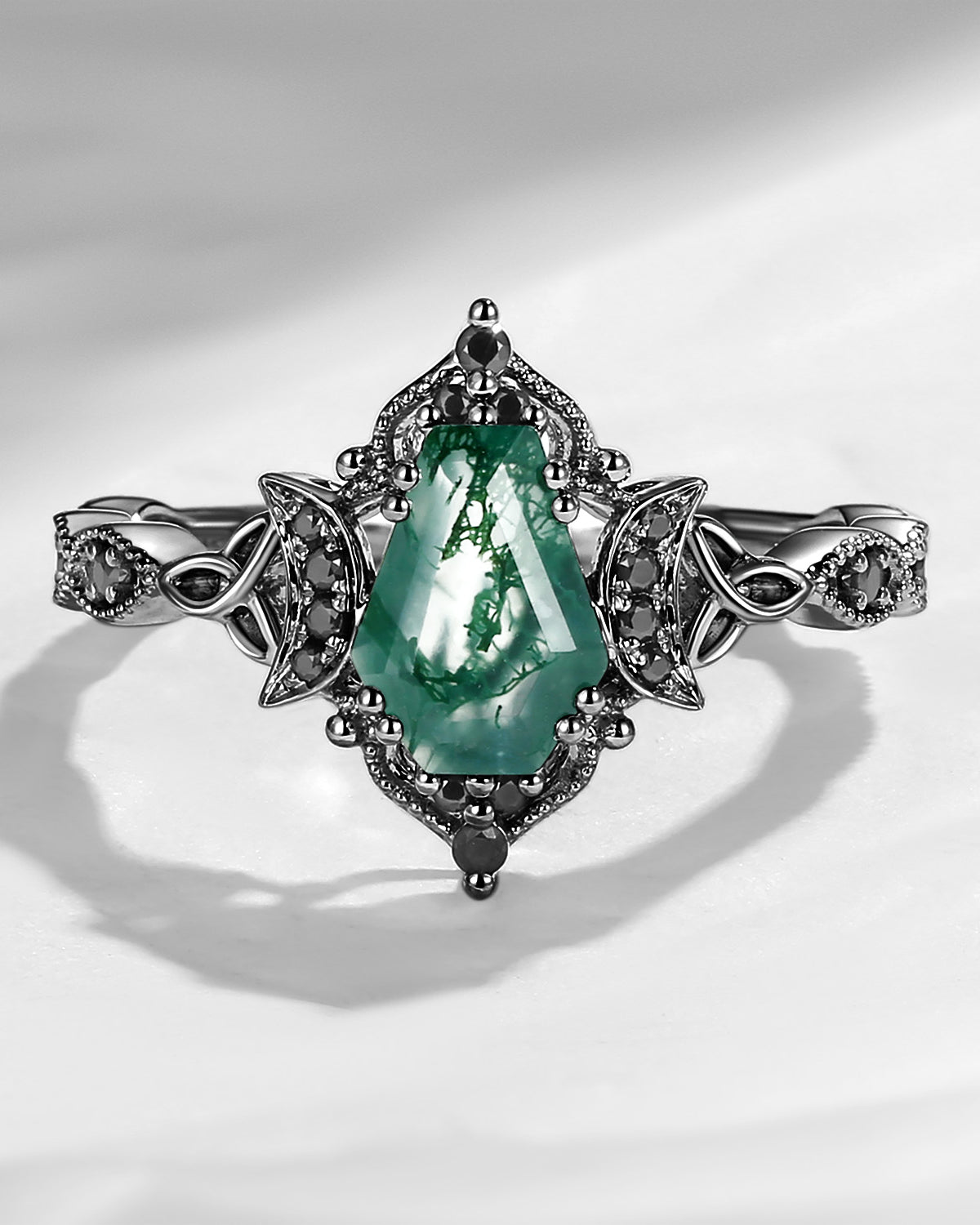 Crescent Moon | Unique Coffin Black Moissanite Infinity Celtic Engagement Ring