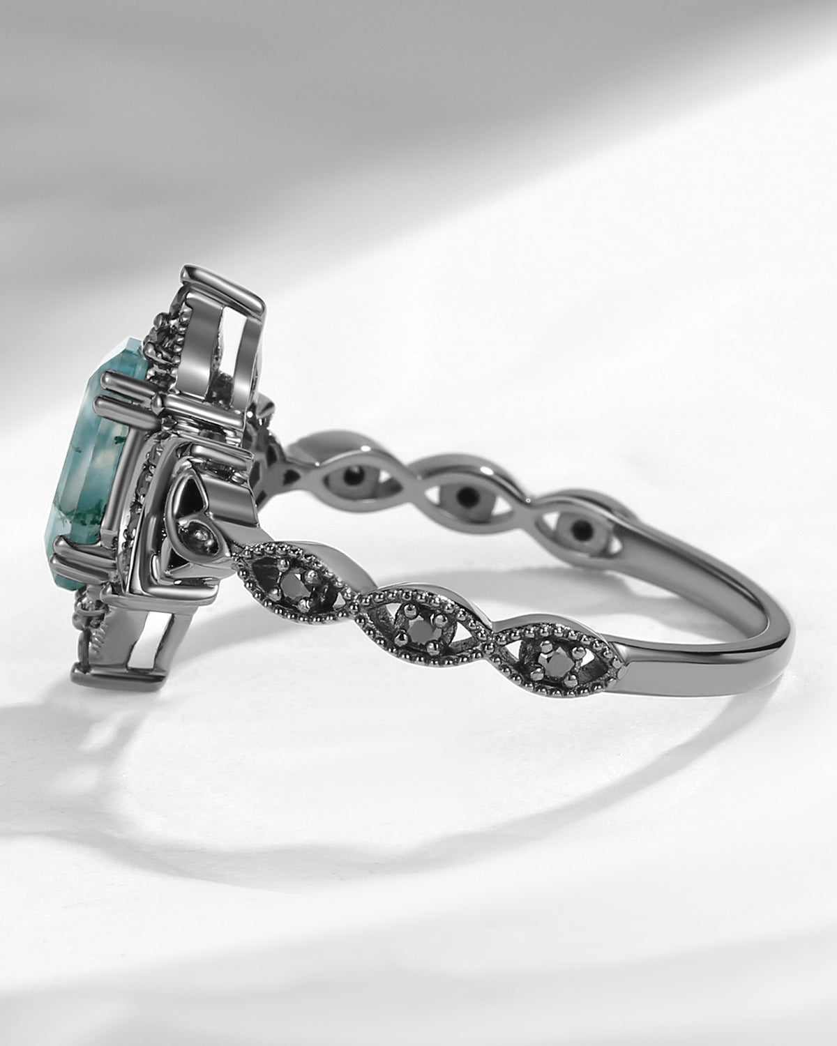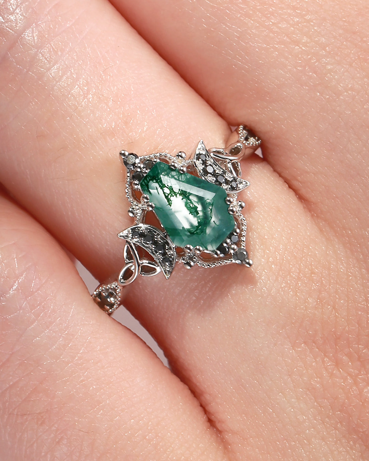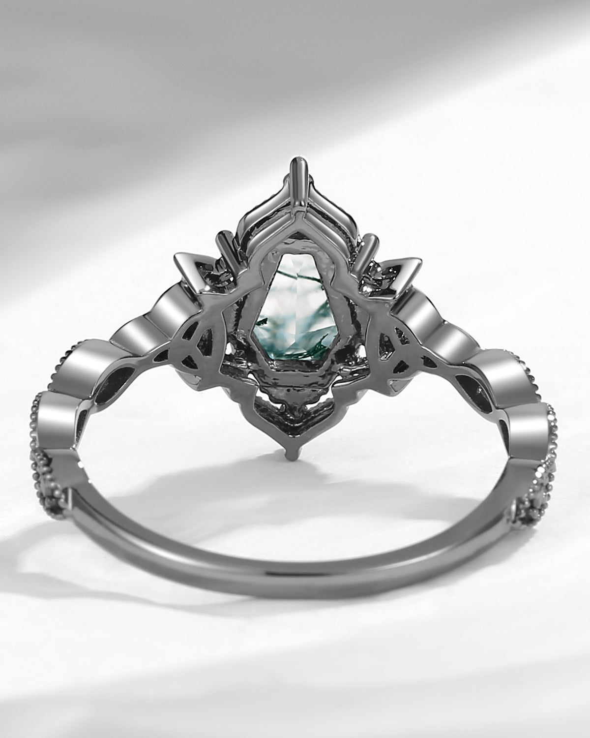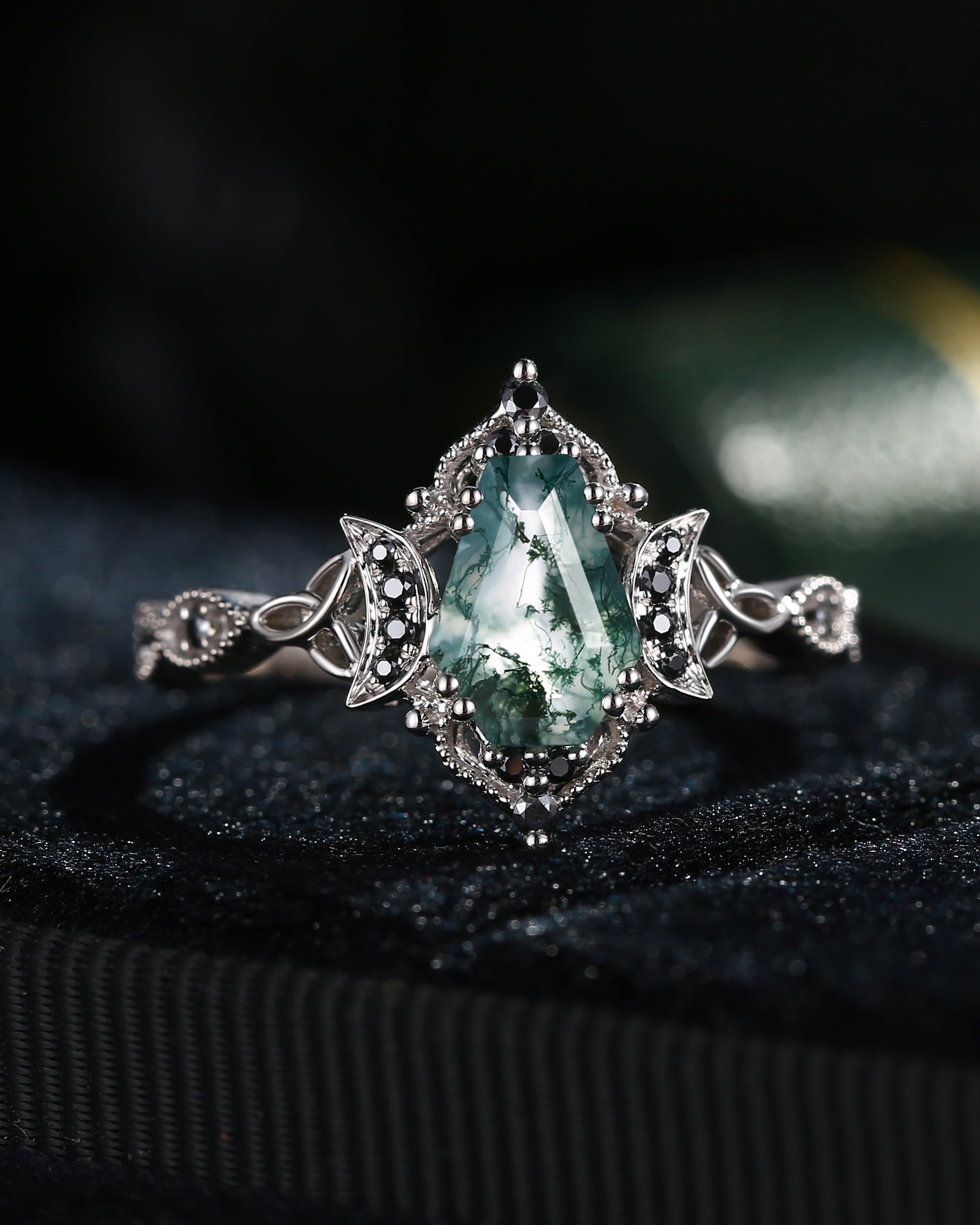 Crescent Moon | Unique Coffin Black Moissanite Infinity Celtic Engagement Ring
