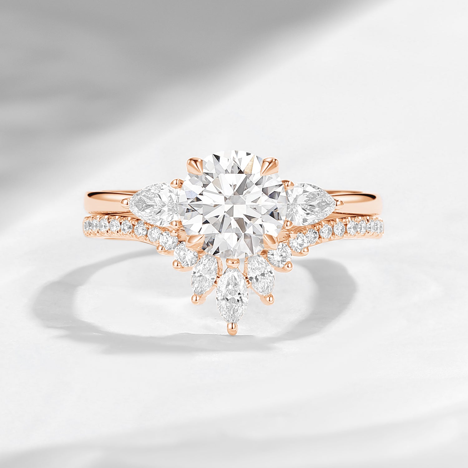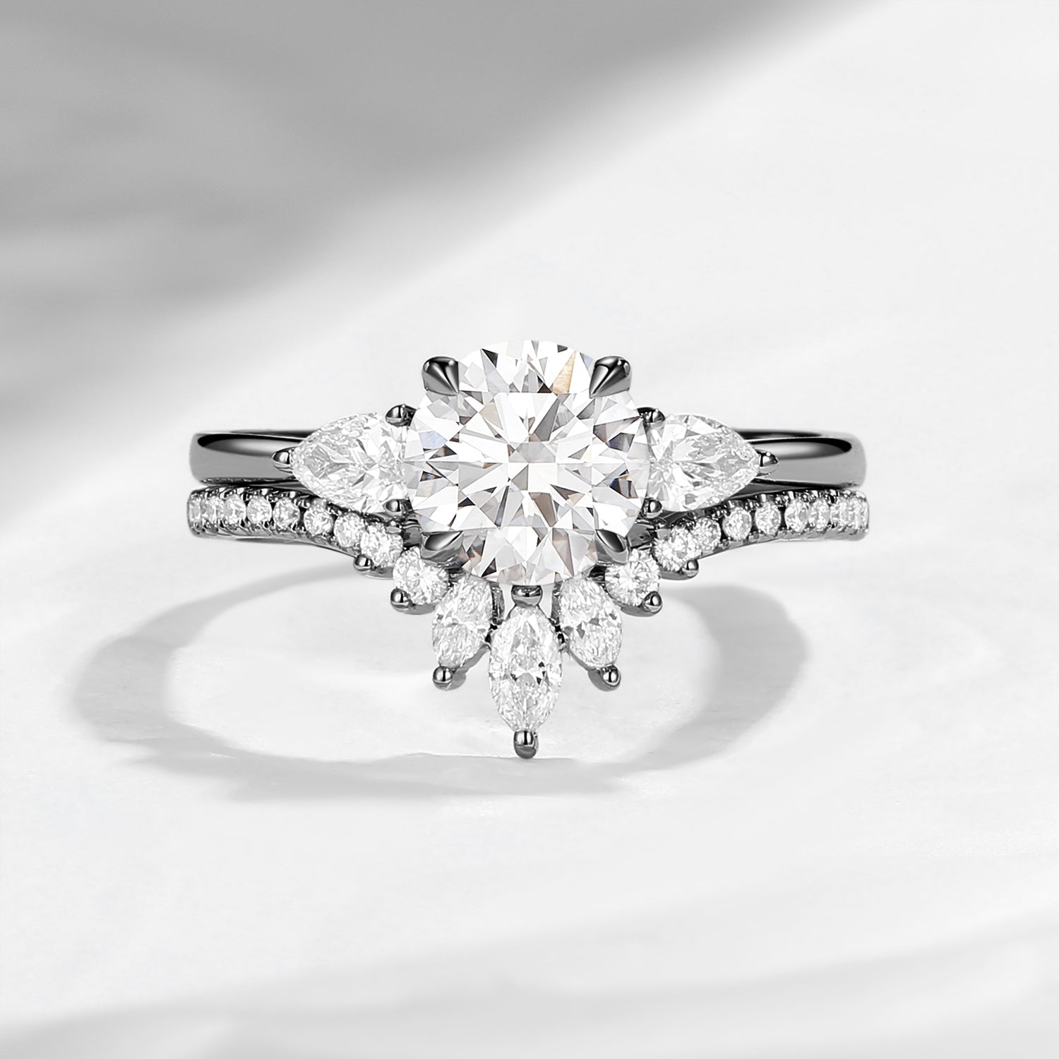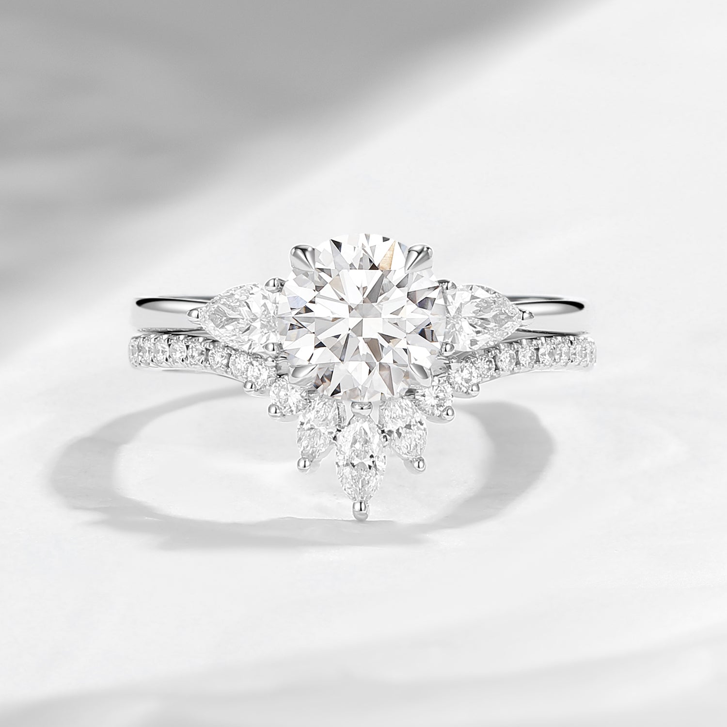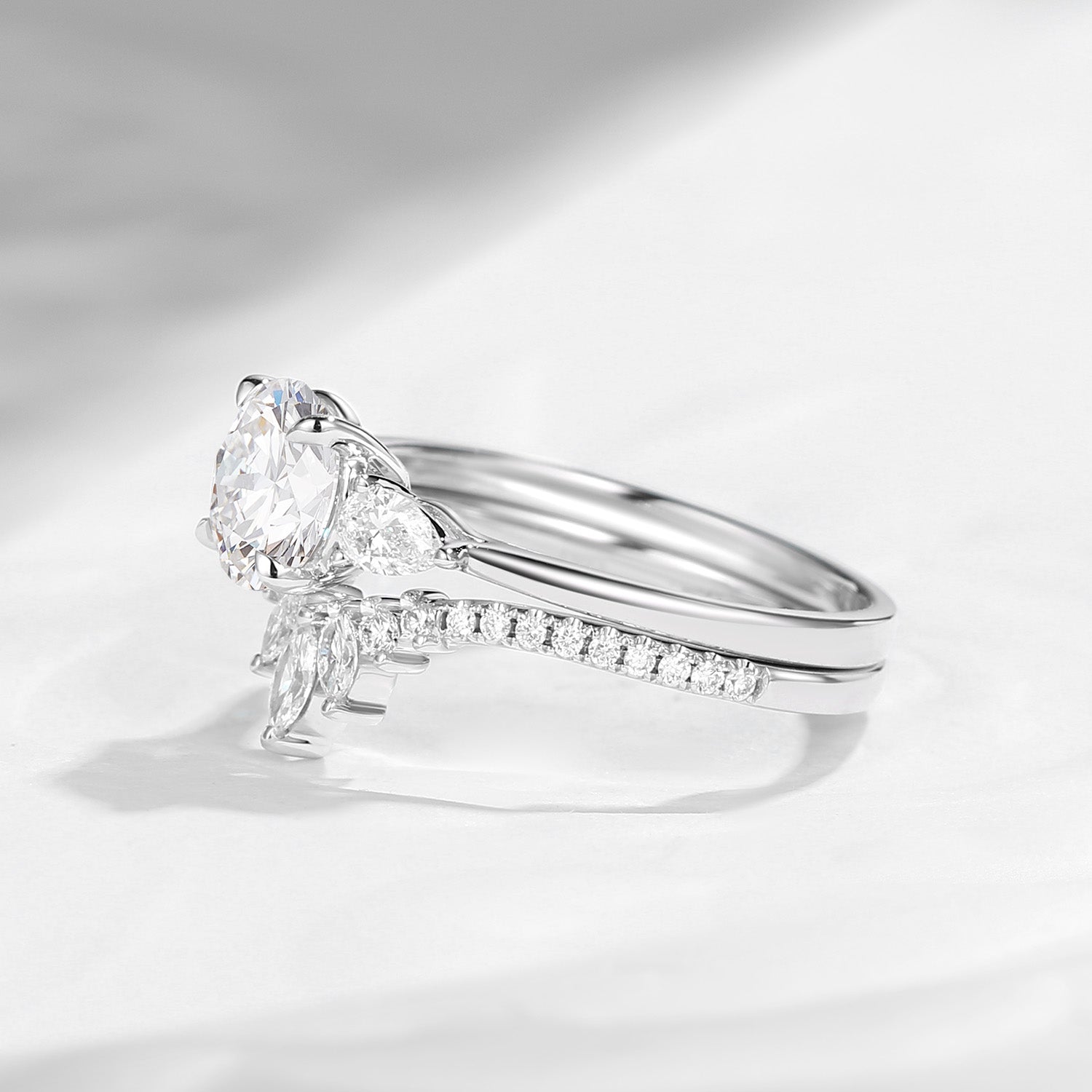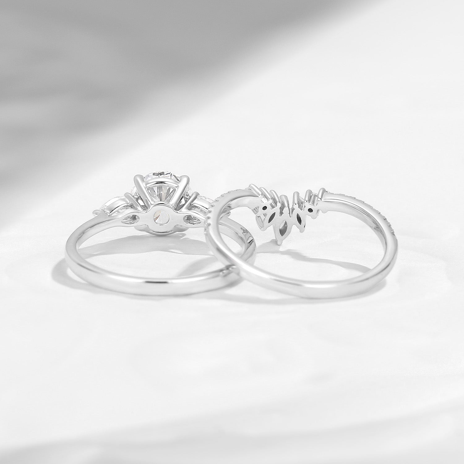 1.0-2.0ct Round Cut Lab Diamond Three-Stone Engagement Ring Set 2pcs