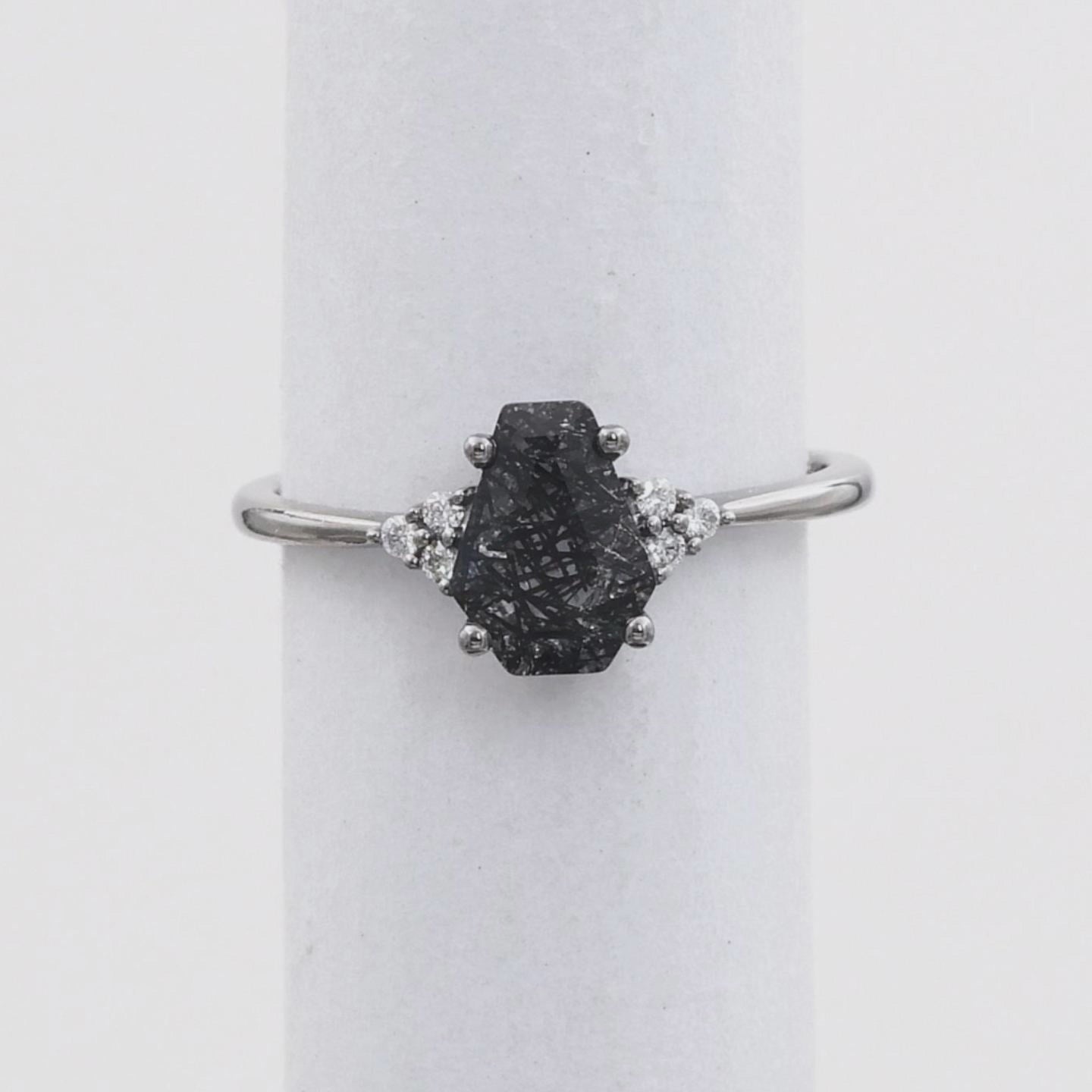 Coffin Shaped Black Rutilated Quartz Engagement Ring Engagement Ring Unique Cluster Ring Solitaire Ring