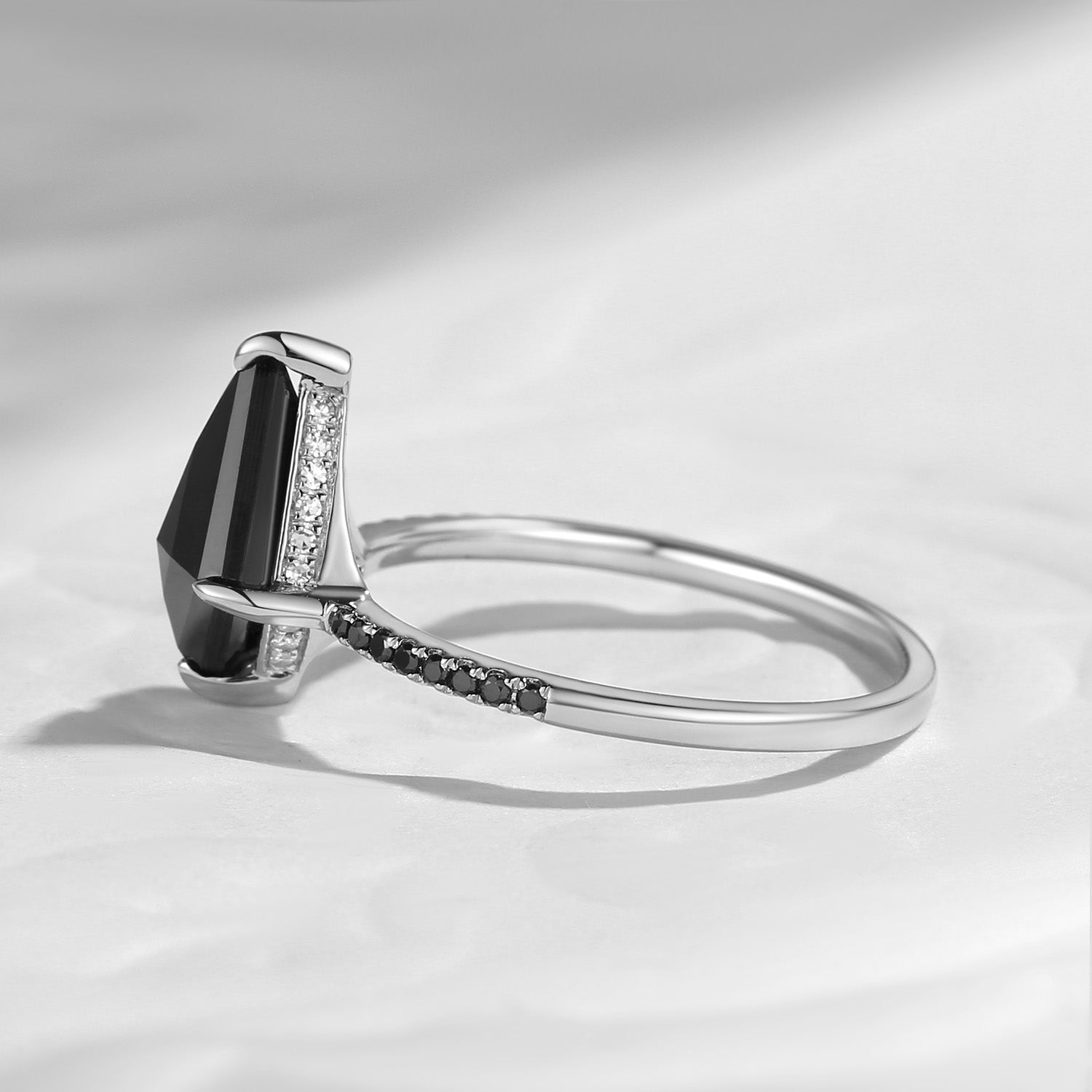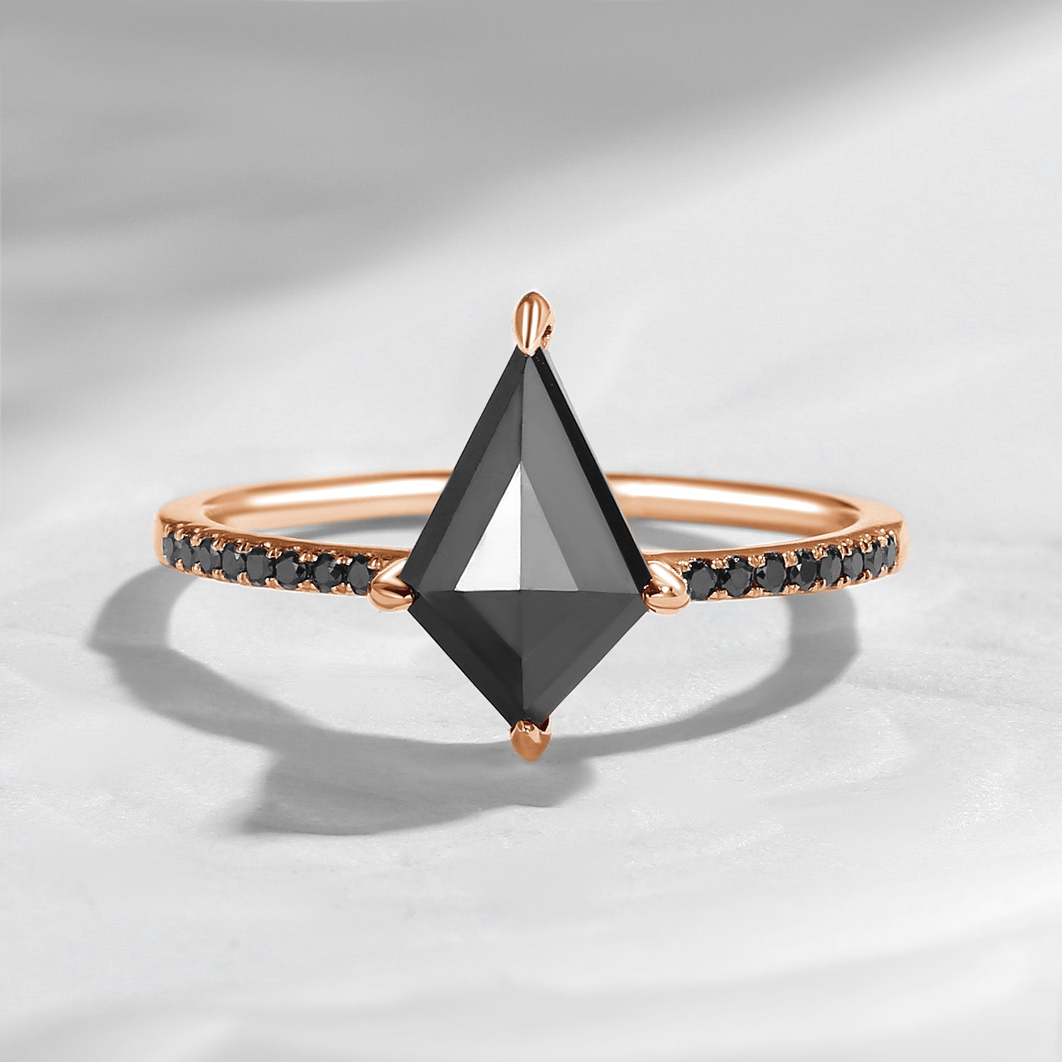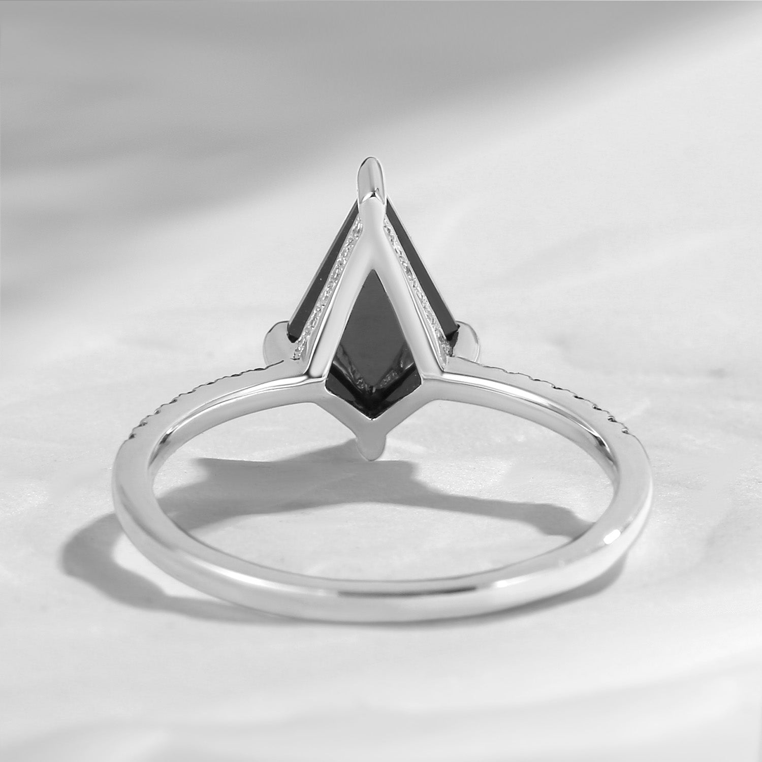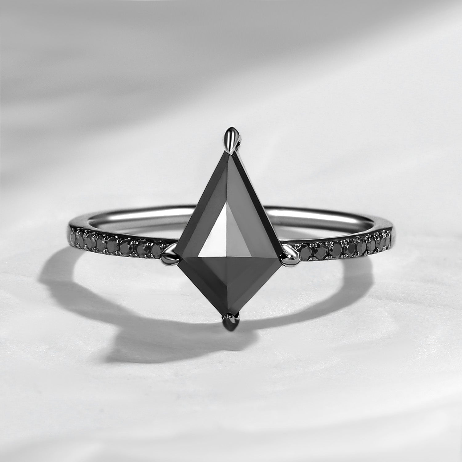 Unique Kite Shaped Black Diamond Hidden Halo Engagement Ring